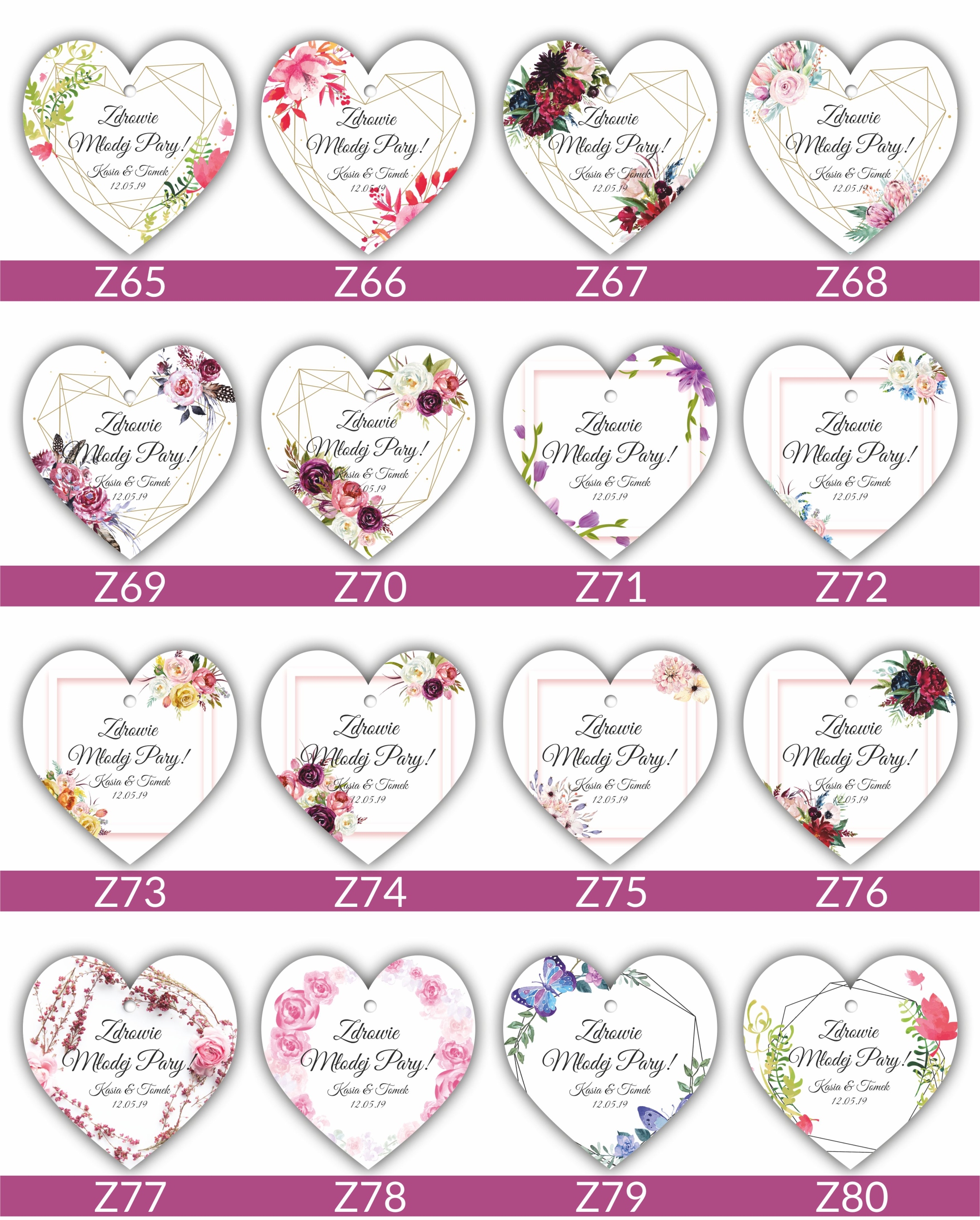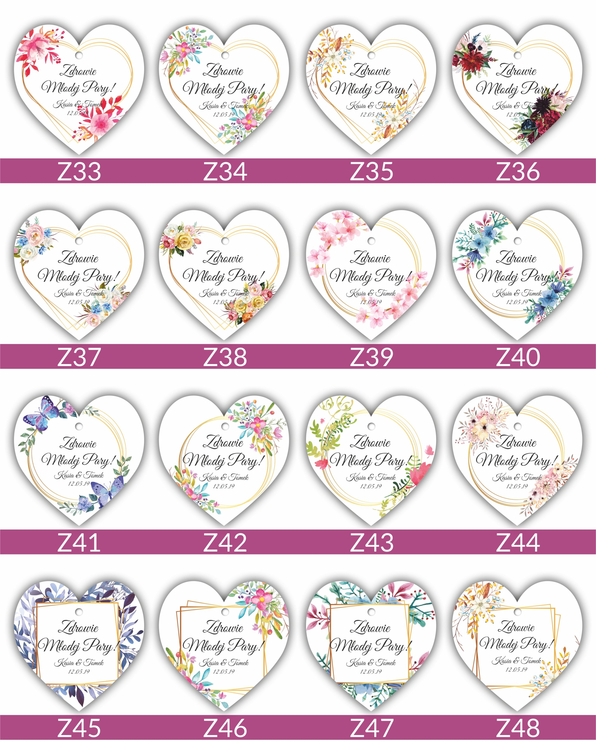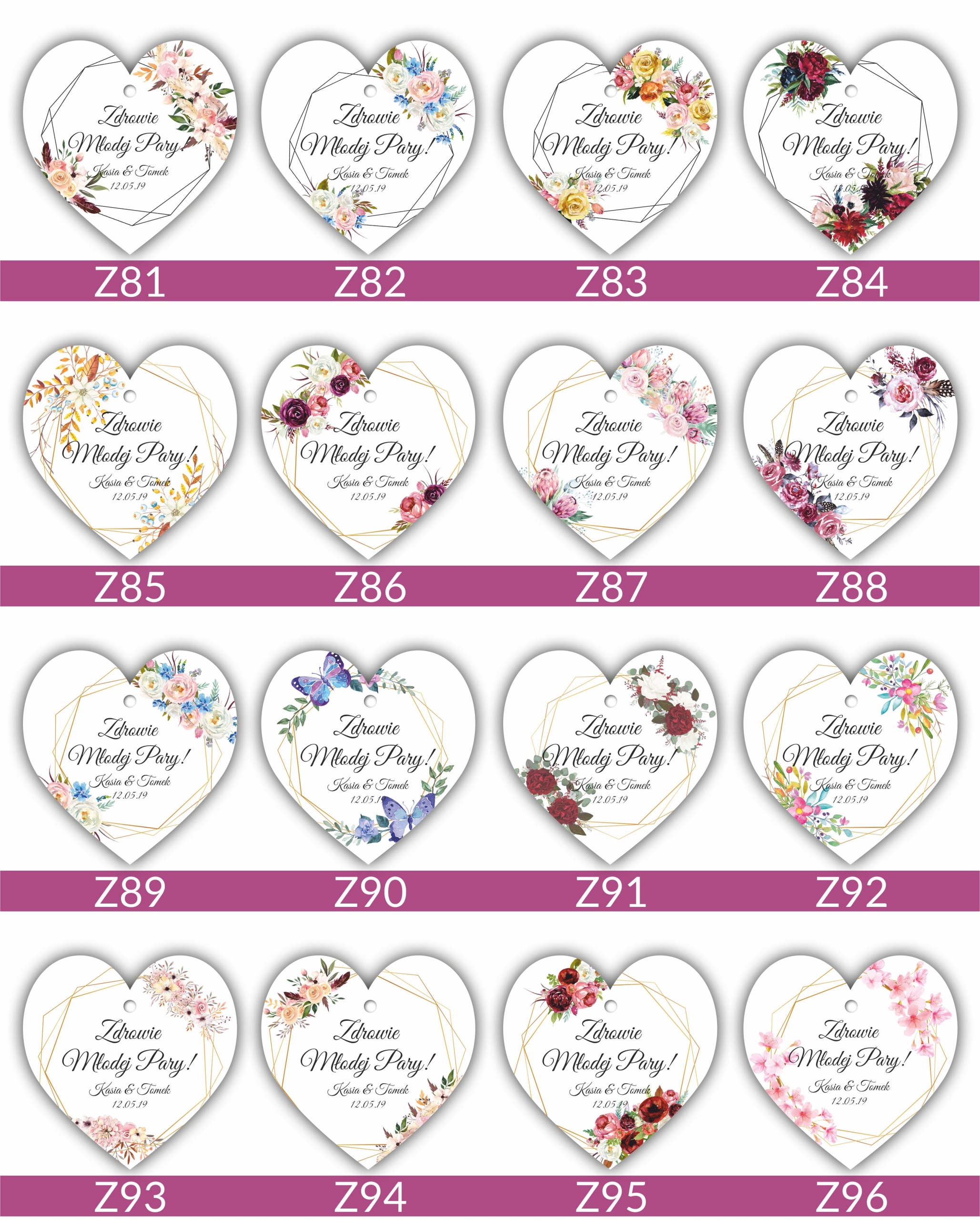 Подвески односторонние, а выделенный текст/текст печатается вместо текста «Здоровье жениха и невесты».