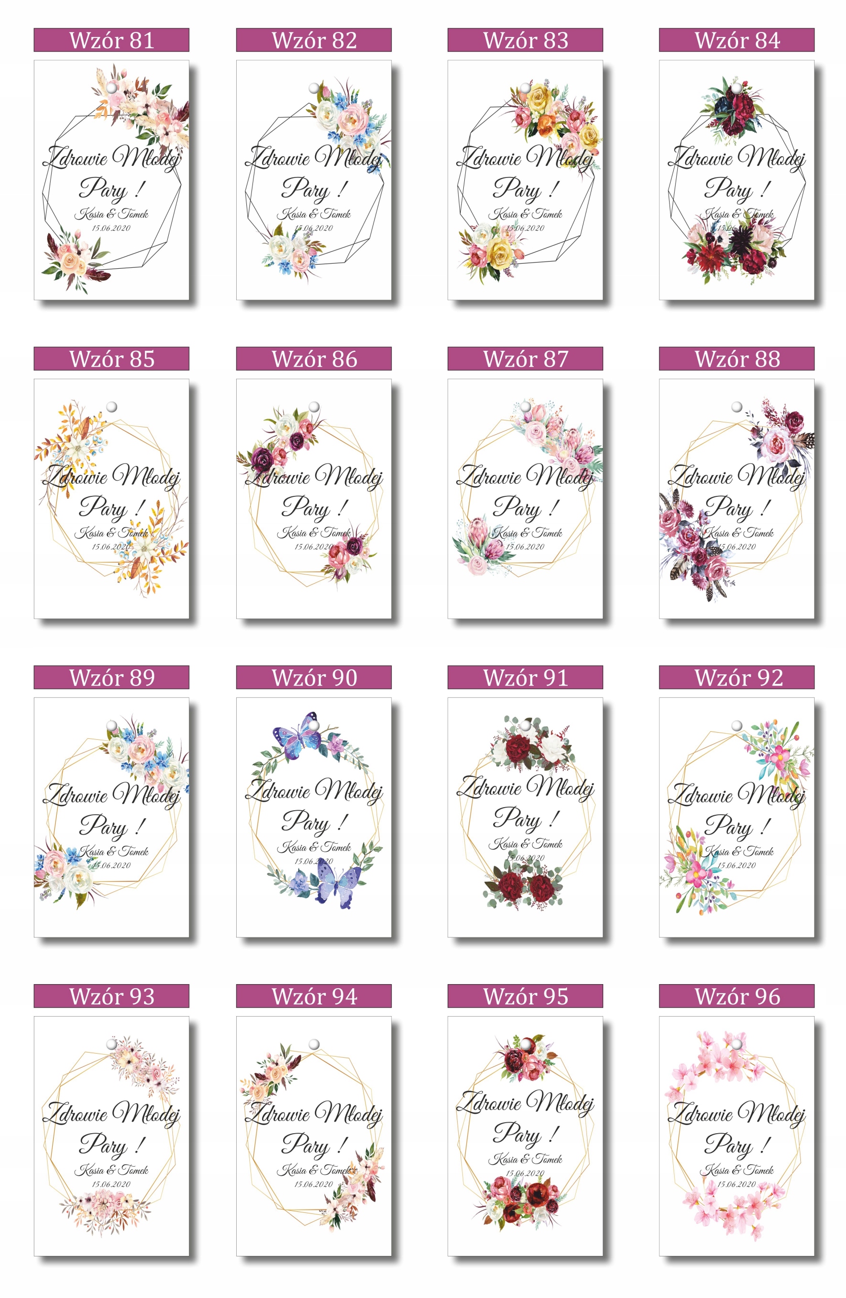 Подвески односторонние, выделенный текст/текст печатается вместо текста «Здоровье жениха и невесты».