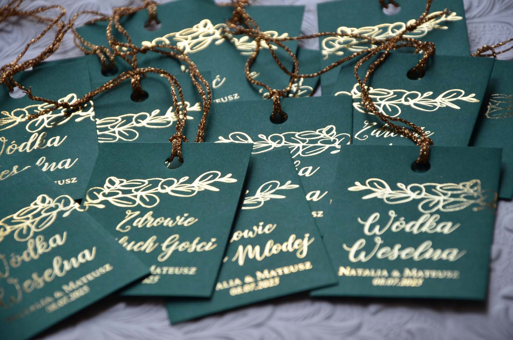 В стоимость включен 1 комплект, то есть 48 штук персонализированных алкогольных подвесок с 4 текстами + золотые нити.