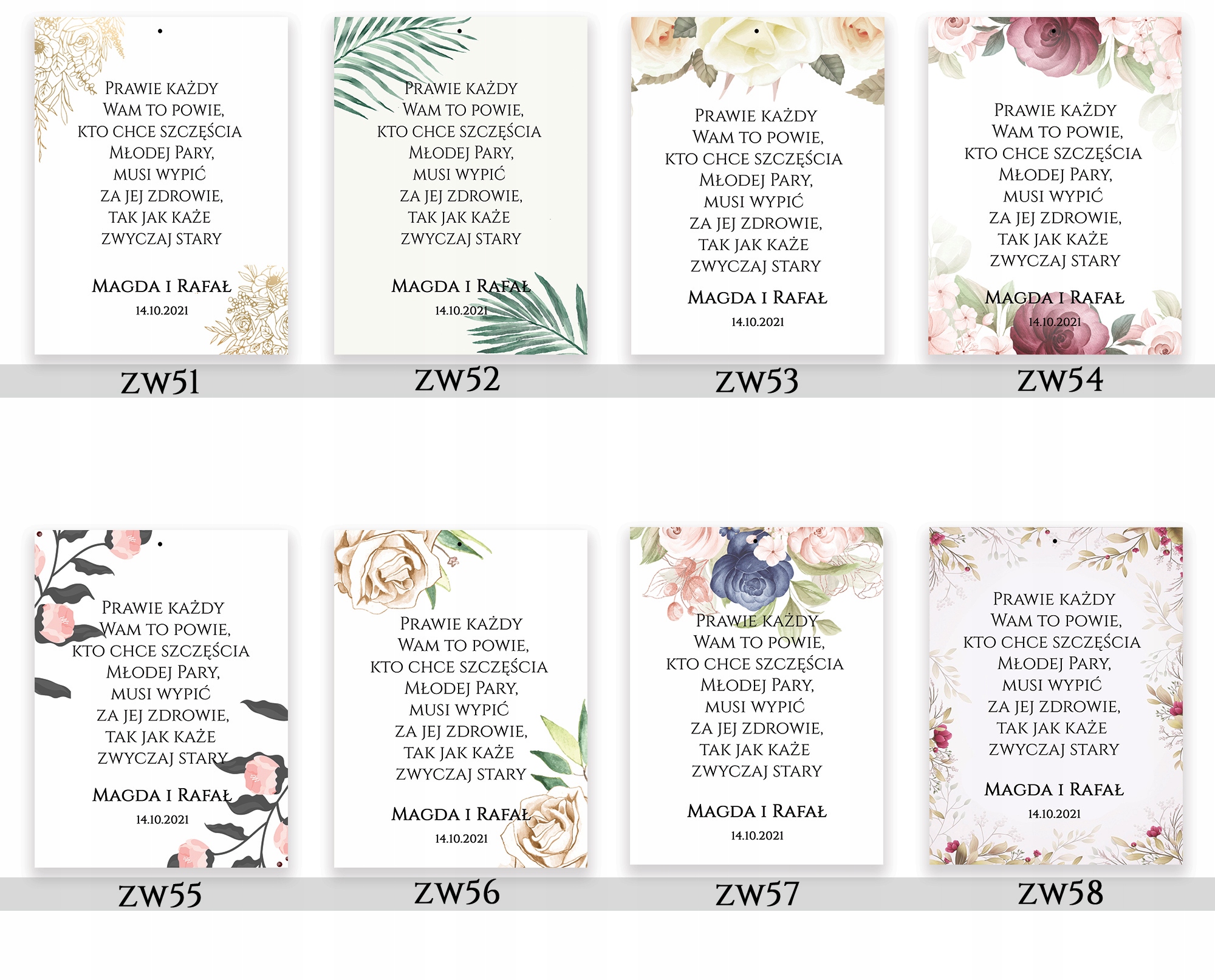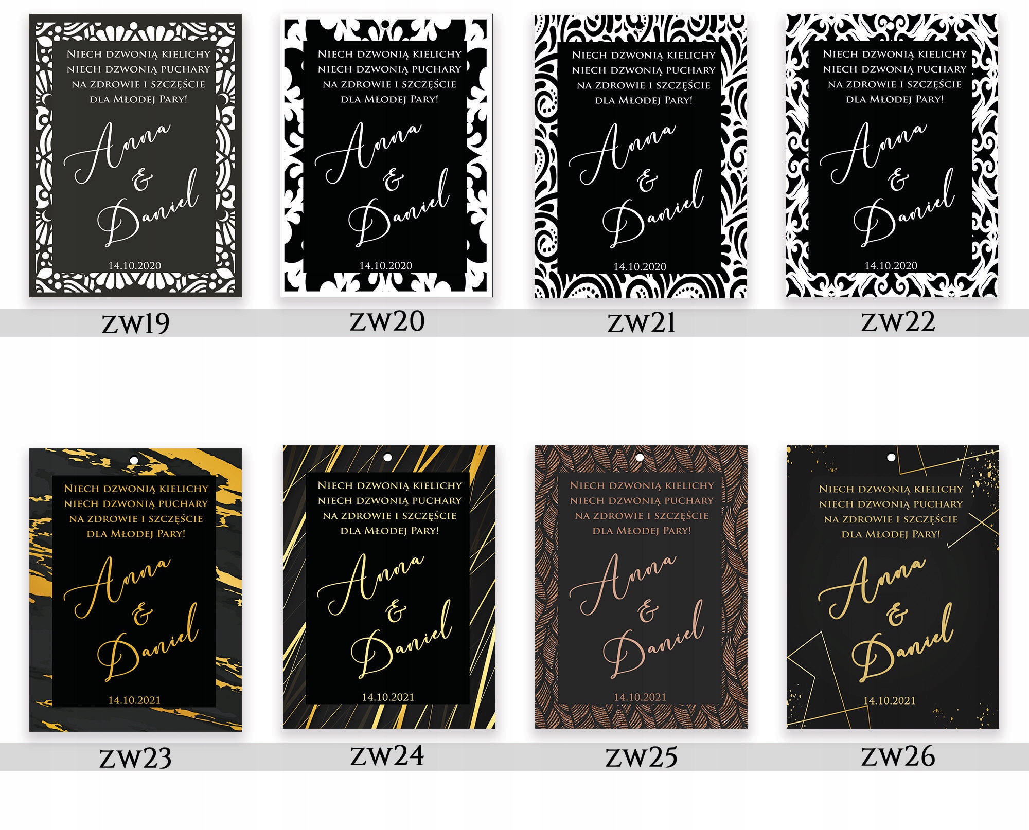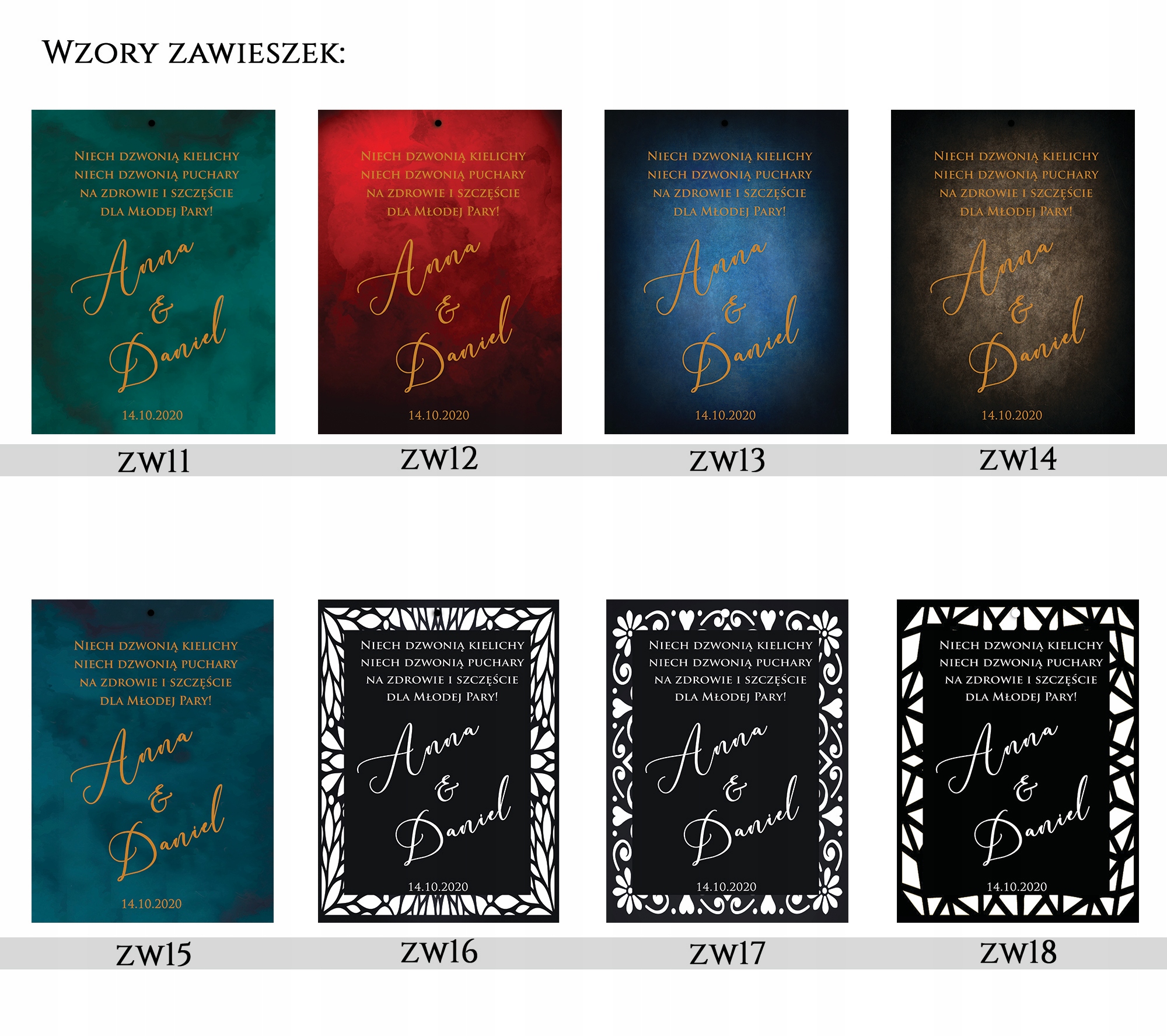 - имя и фамилия жениха и невесты с датой церемонии