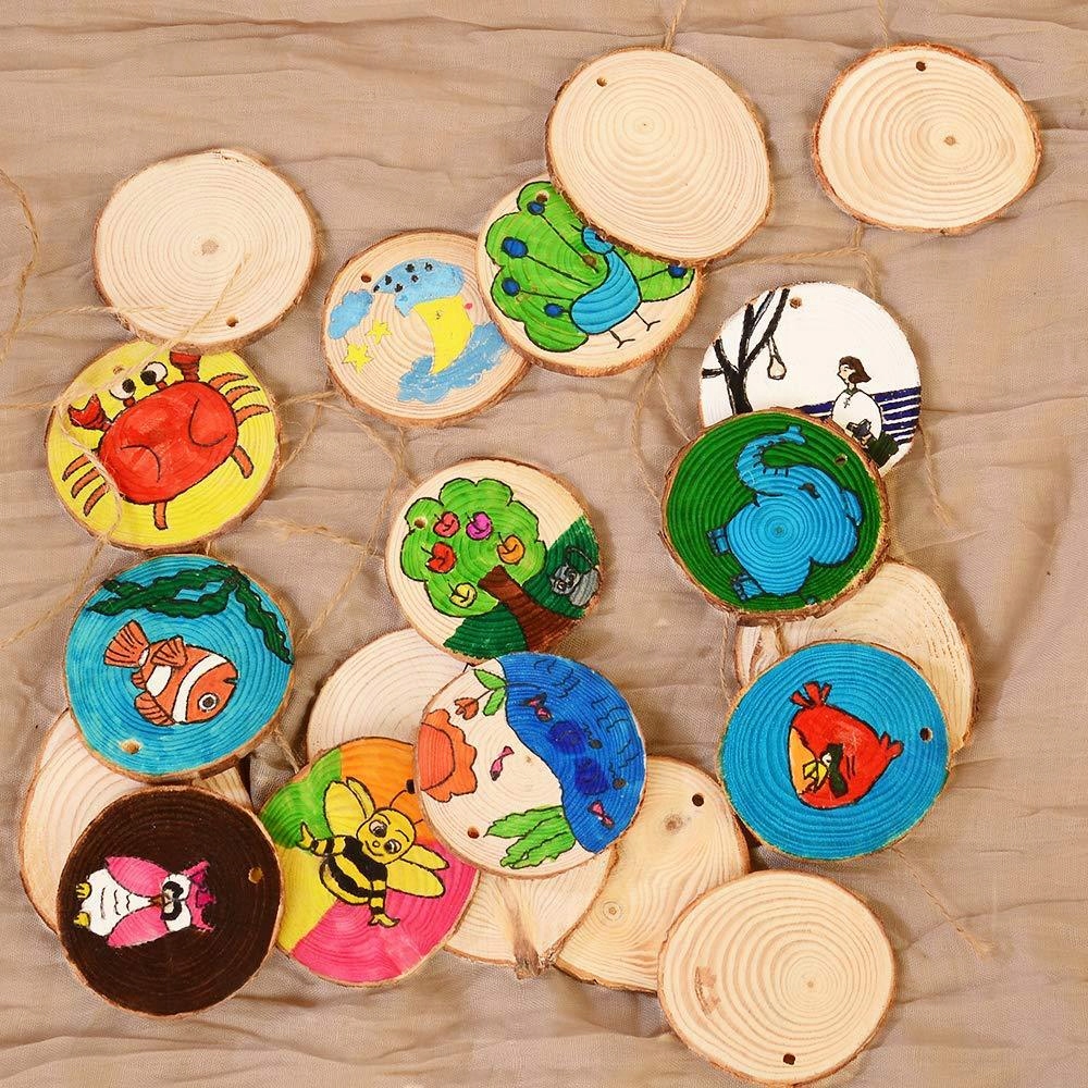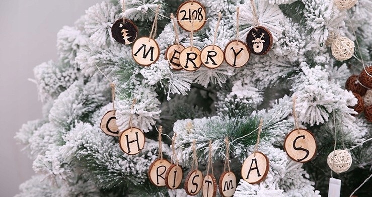 Деревенский стиль, очень модный в последние годы, также прекрасно вписывается в Рождество. Деревянные украшения прекрасно гармонируют с зеленой хвоей елки. А когда сочетаешь деревенский стиль с капелькой собственного творчества, должно получиться что-то оригинальное! Наши деревянные кольца с подвеской можно использовать по-разному, как вы можете видеть ниже - как подвеску на елку или как подписанный подарок для своих близких. На них можно писать маркером и они надолго останутся сувениром.