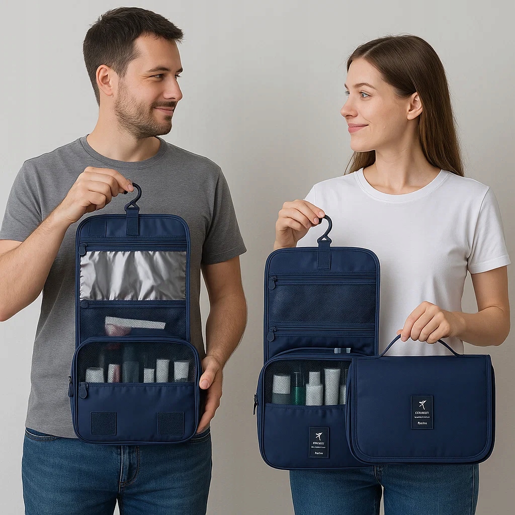 Многочисленные карманы и отсеки будут размещать все необходимые косметики, гигиенические аксессуары и мелкие предметы, и прочный материал обеспечивает сопротивление влаге и повреждениям. дома.