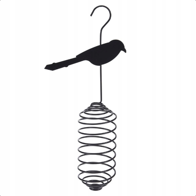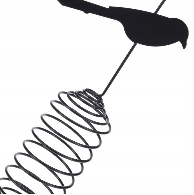 - Кормушка Имеет форму пружины, украшена металлической птицей.