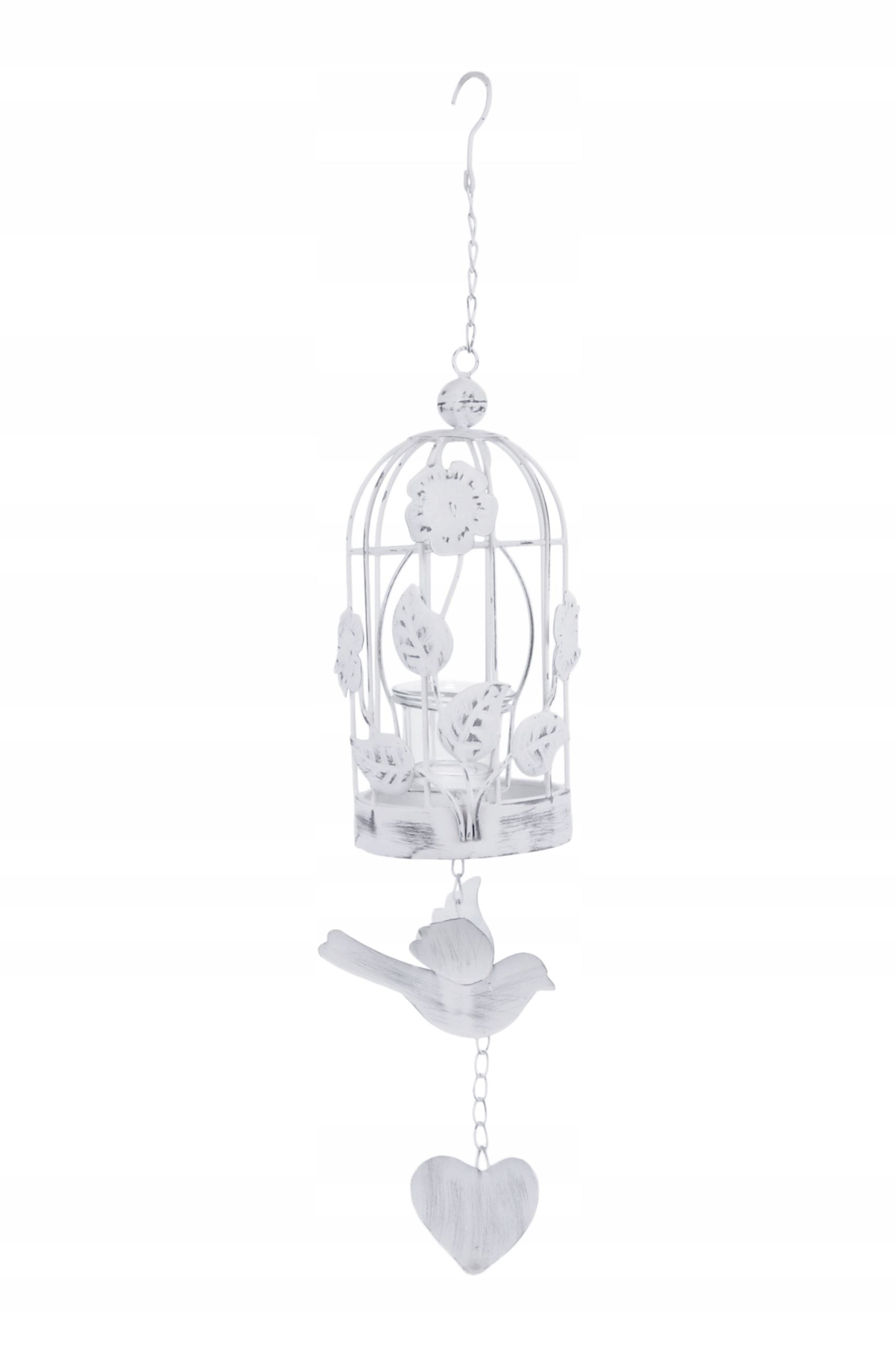 Предмет аукциона — небольшой белый подвесной подсвечник в форме клетки.