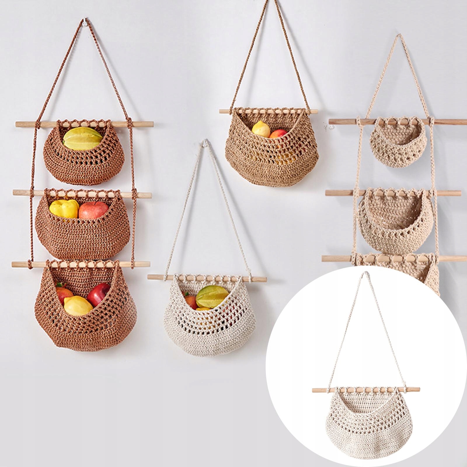 [Подвесная корзина для фруктов]: тканая сетка для фруктов, удобная для хранения фруктов и закусок различного размера.