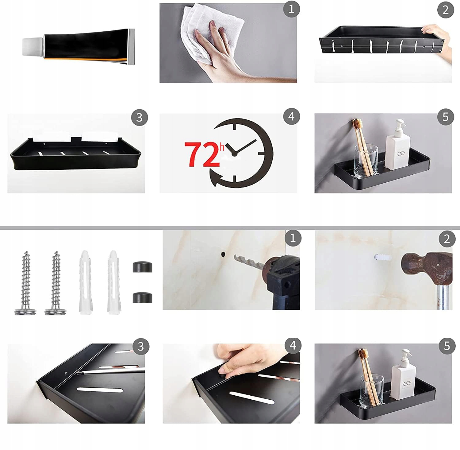Благодаря двум доступным методам установки — на клей или шурупы — вы можете легко подобрать способ установки в соответствии со своими предпочтениями и типом стены. Монтаж с помощью клея осуществляется быстро, легко и не требует сверления отверстий, а крепление с помощью шурупов обеспечивает большую устойчивость, особенно при больших нагрузках.