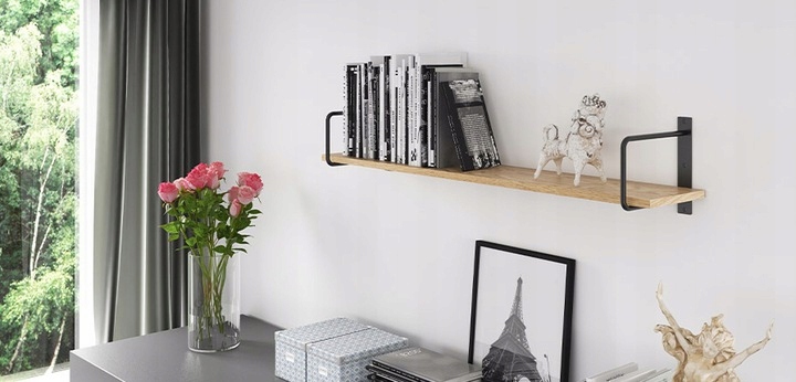 Подвесная настенная полка 110x20см + 2 опоры для ремня, грузоподъемность 30 кг, идеально подходит для хранения книг