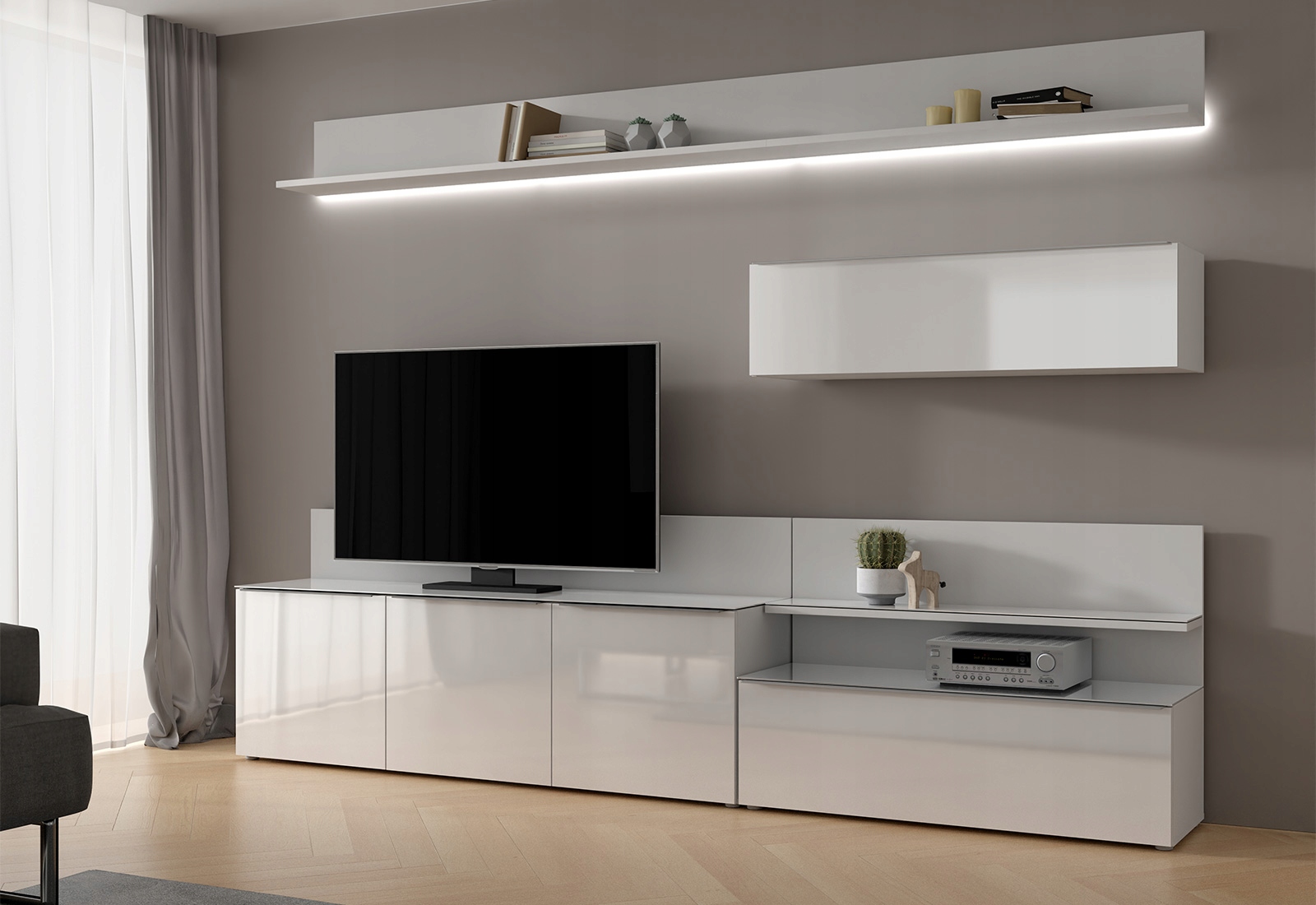 Мебель из коллекции TACJUS – идеальное решение для людей, ценящих простоту и элегантность. Простые формы и формы, белые цвета прекрасно впишутся в интерьеры, оформленные в стиле минимализма. В предложение входят комоды разных размеров, тумба под телевизор, витрина, стол и полки, благодаря которым вы легко сможете обустроить свою гостиную.