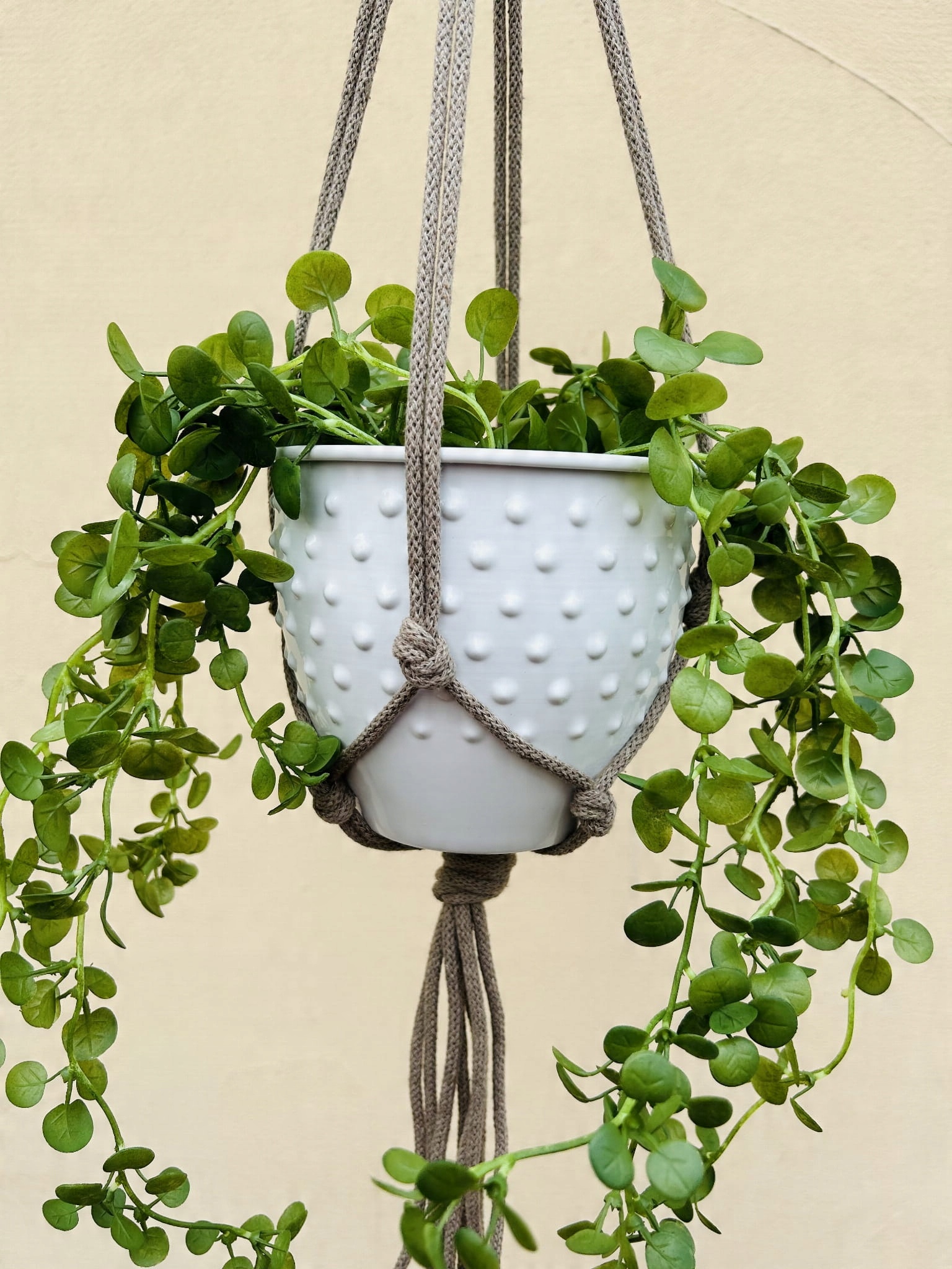 Подвесная подставка для цветов в стиле макраме из ниток в стиле бохо ТЕМНО-БЕЖЕВЫЙ