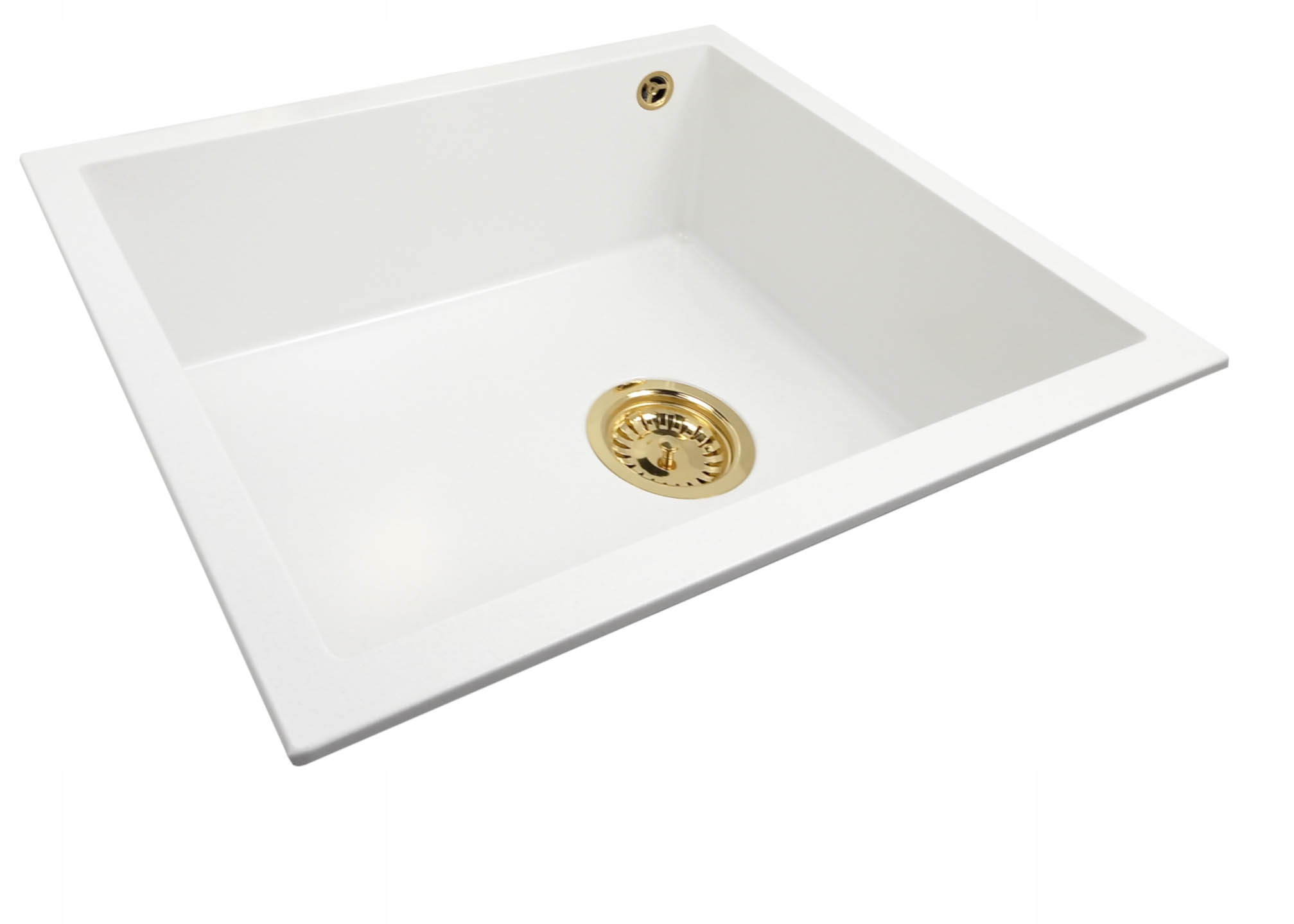 ПІДВІСНА ПІДСТІЛЬЧИННА МИЙКА ОДНОБАСТРОВА, БІЛИЙ + ЗОЛОТИЙ СИФОН