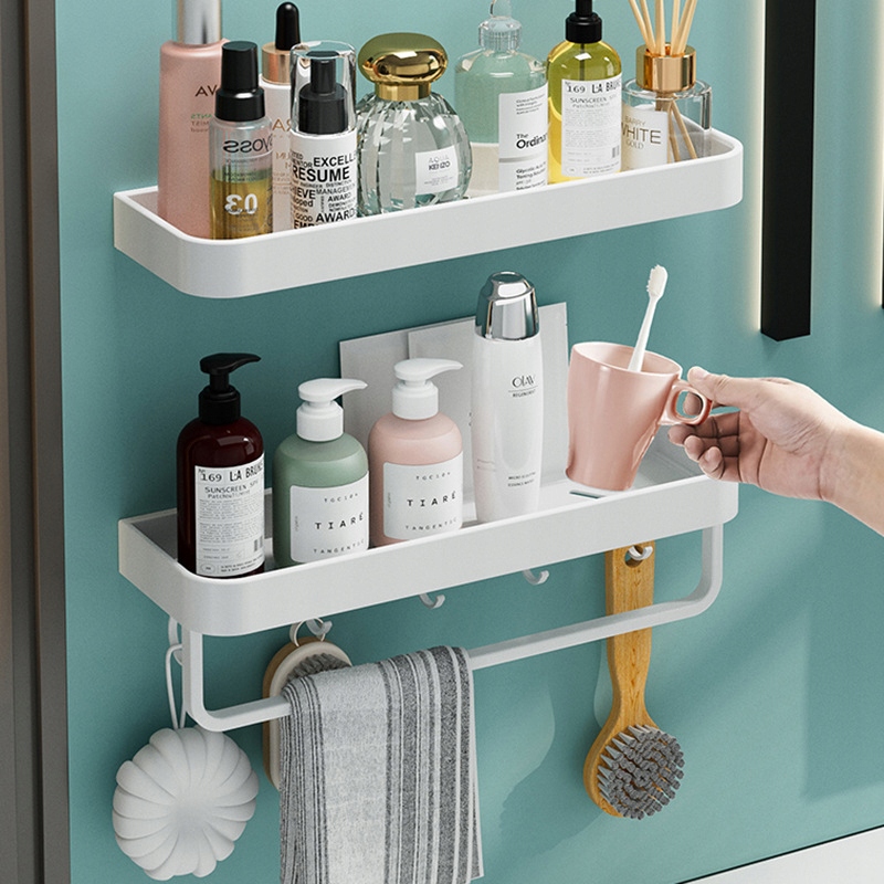 Без сверления/настенная полка для душа для ванной комнаты, алюминиевое пространство, 40X12,5X3,5 см, белая, с вешалкой для полотенец и крючком, 1 шт.