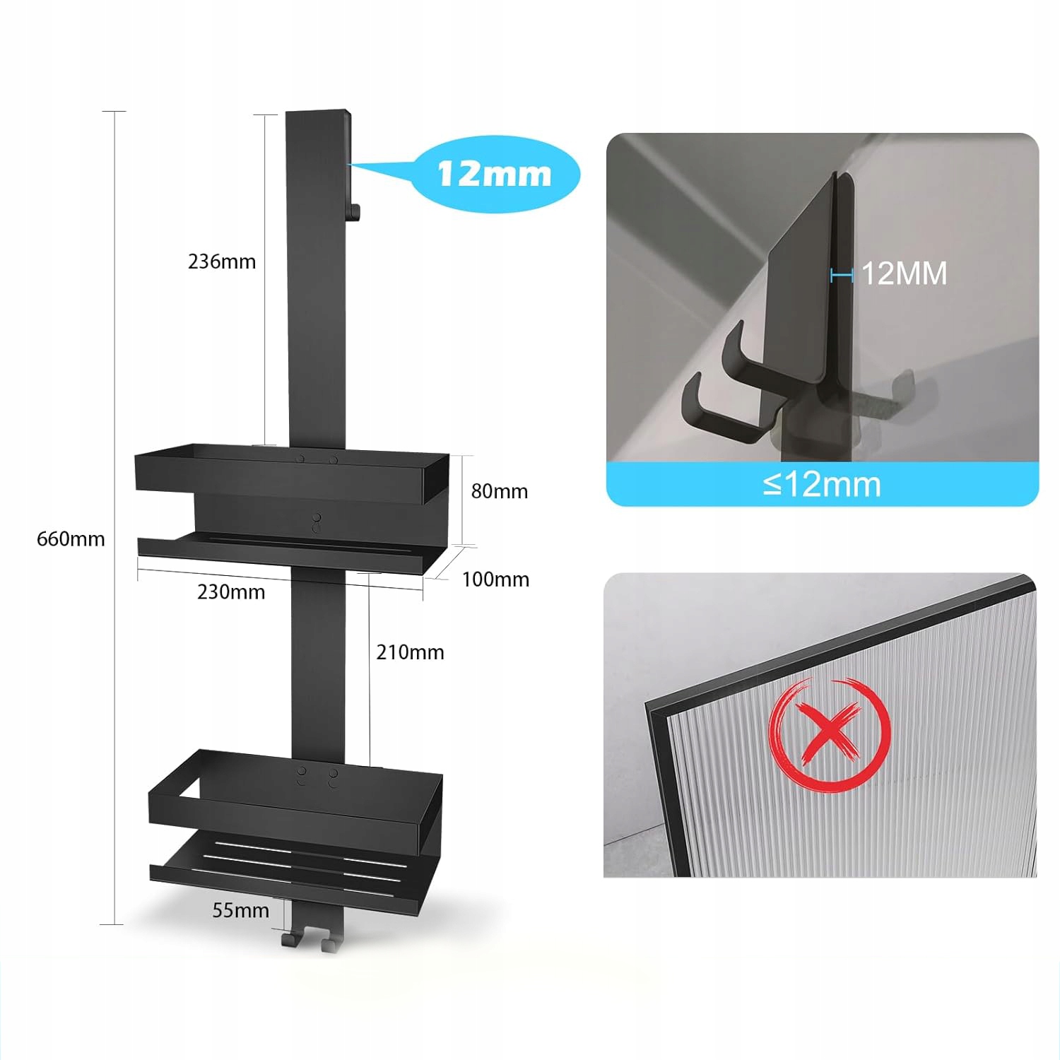 🪝 Подходит для дверей толщиной до 12 мм. Пожалуйста, измерьте перед заказом, чтобы убедиться, что кронштейн подойдет к вашей двери.