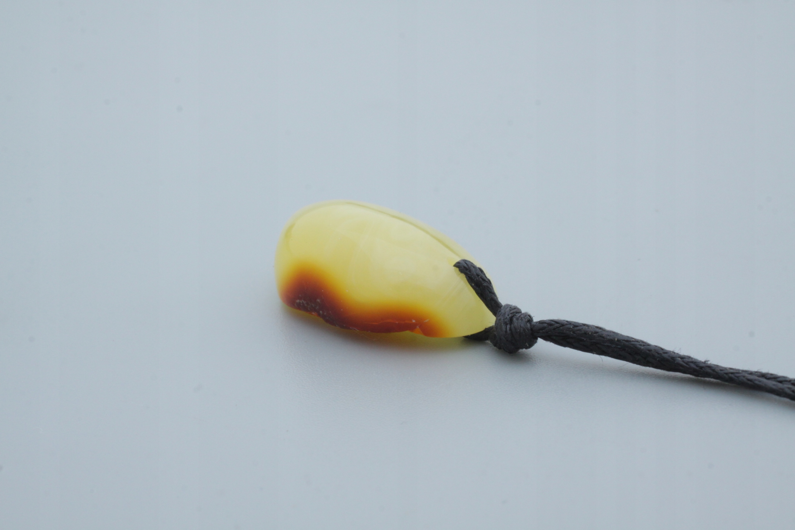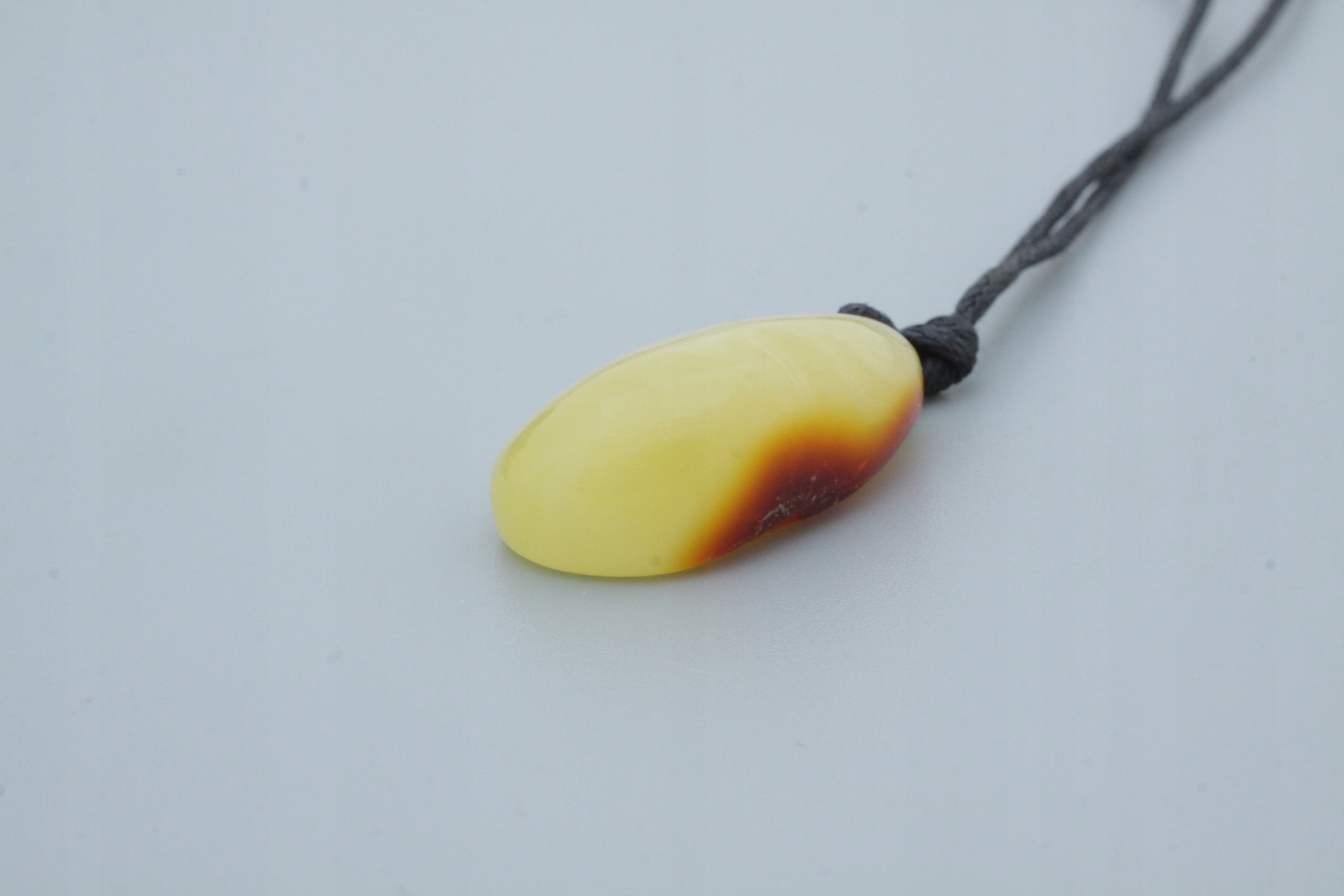 Вся наша продукция изготавливается вручную в мастерской нашей компании, отсюда и уникальная форма каждого кулона. Как вы можете видеть на прикрепленных фотографиях, на обратной стороне кулона оставлен внешний слой камня янтаря, так называемая «кожа».