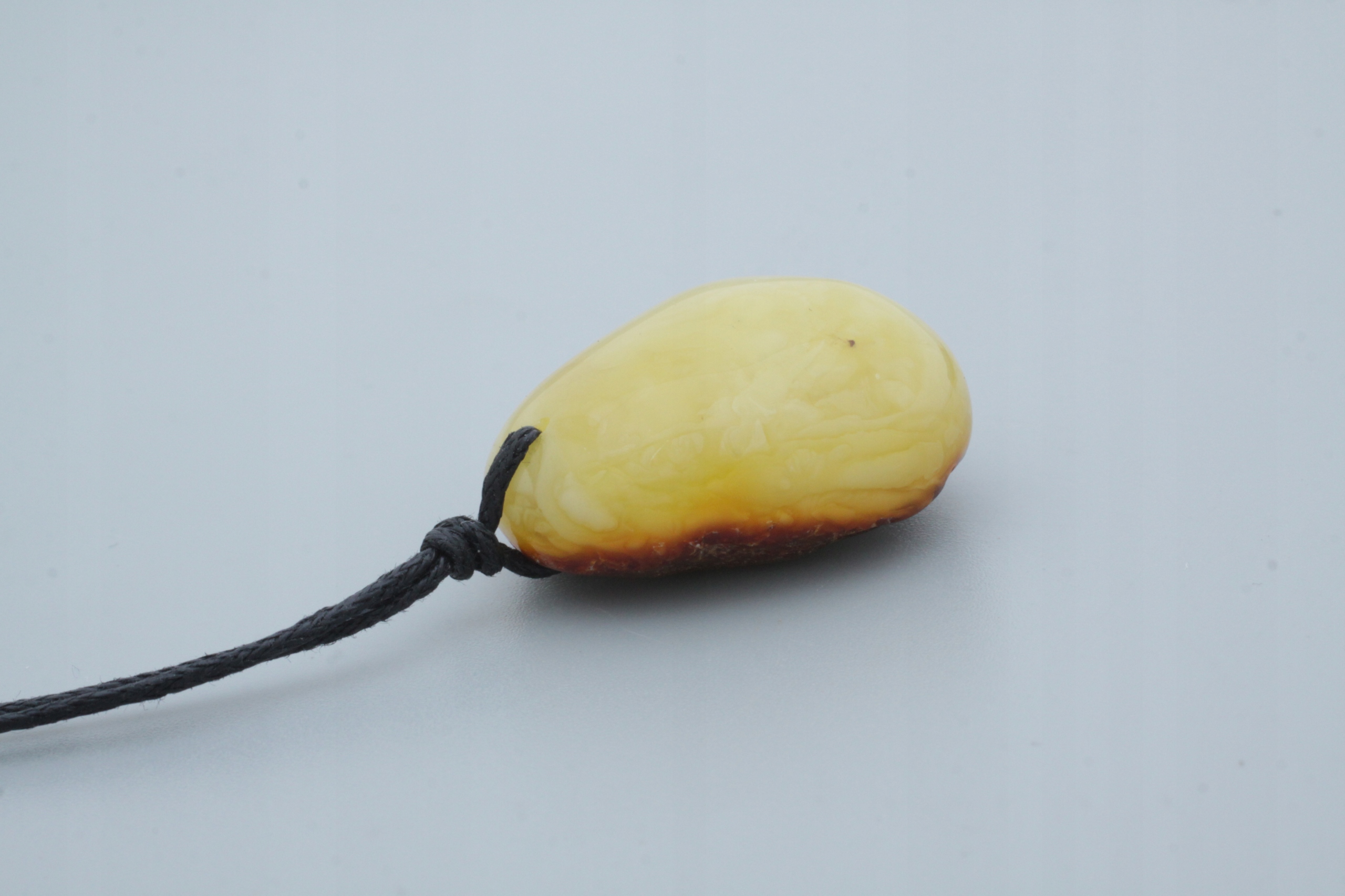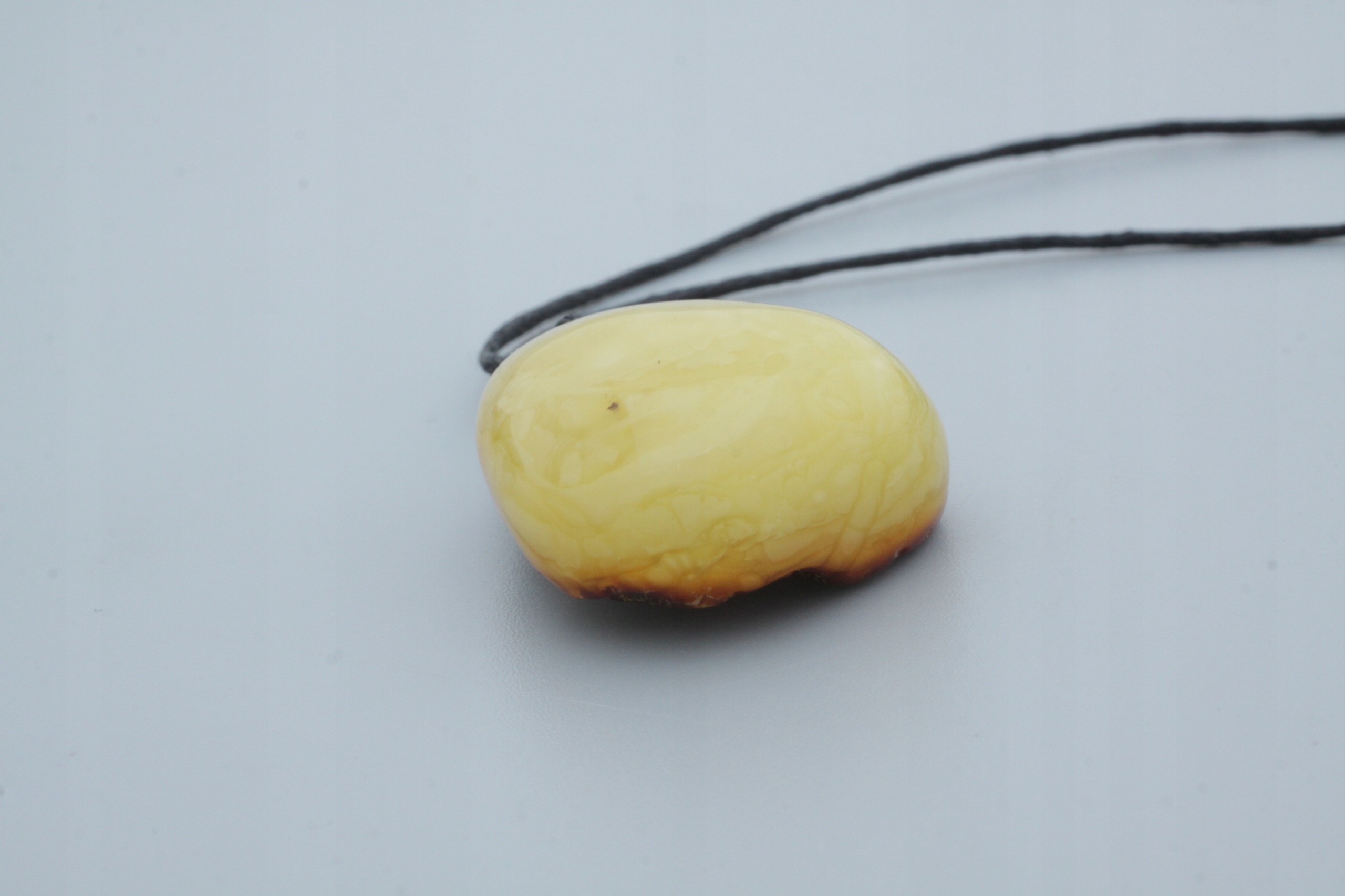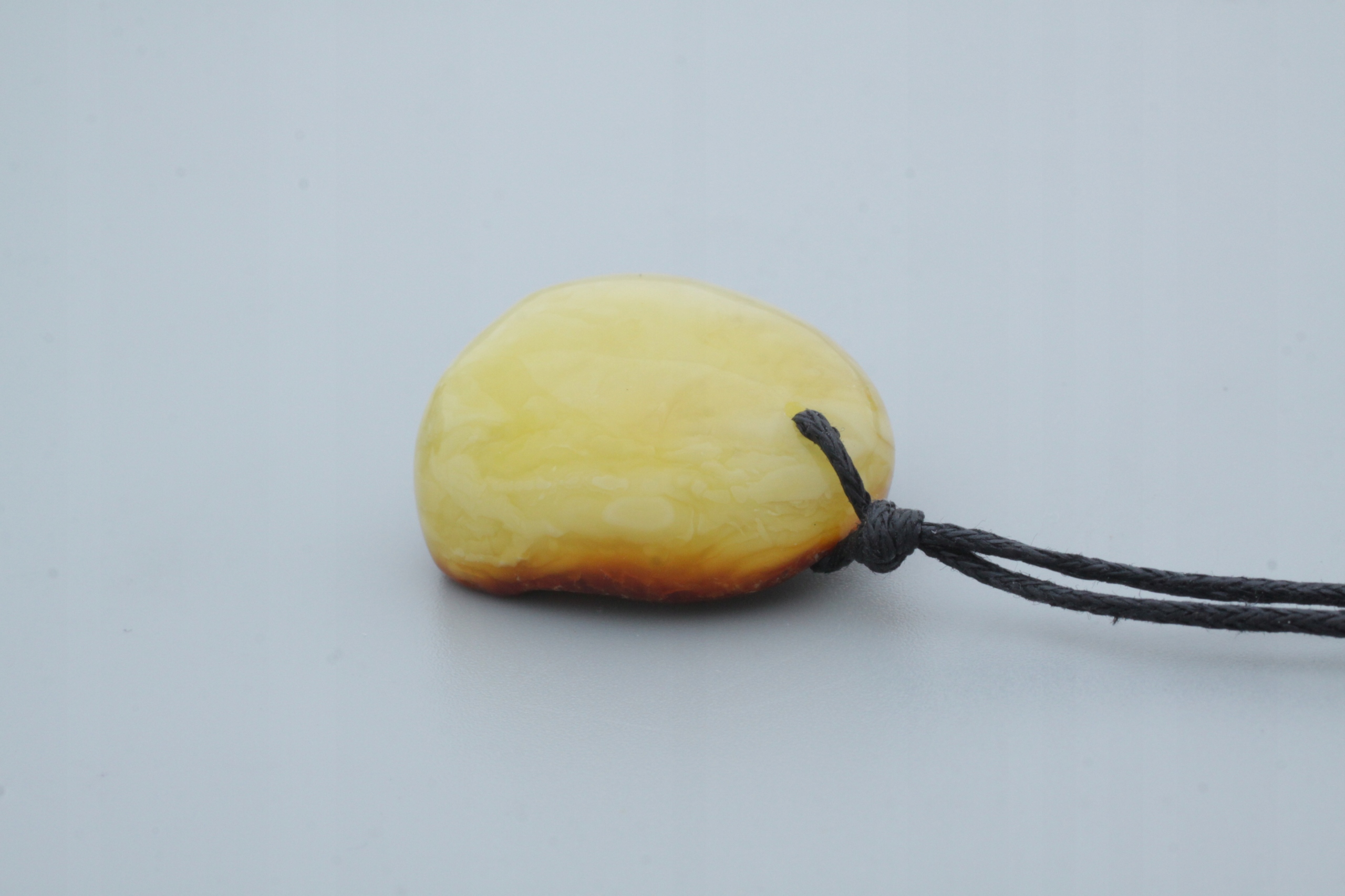 Вся наша продукция изготавливается вручную в мастерской нашей компании, отсюда и уникальная форма каждого кулона. Как вы можете видеть на прикрепленных фотографиях, на обратной стороне кулона оставлен внешний слой камня янтаря, так называемая «кожа».