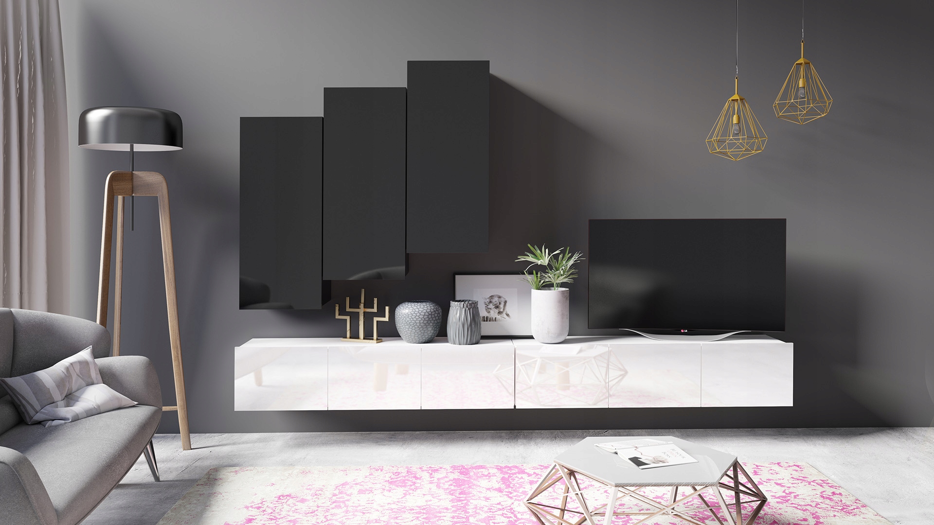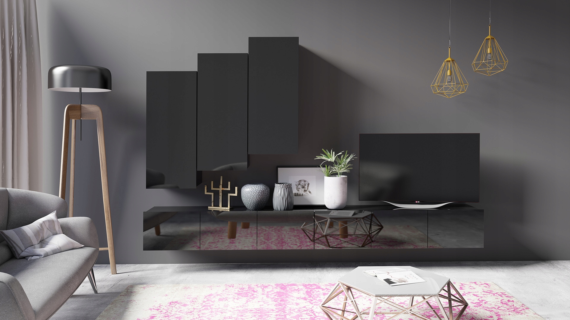 у мебели нет механизма «нажми, чтобы открыть» (выступающие над корпусом фасады выполняют роль ручек),