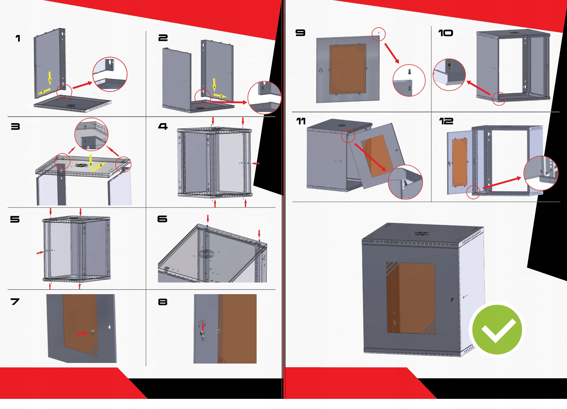 В шкафах RACK 12U производства STALFLEX мы применили новое решение, которое облегчает самостоятельную сборку и уменьшает количество прикручиваемых элементов. Используемая система защелок ускоряет сборку и обеспечивает устойчивость конструкции.