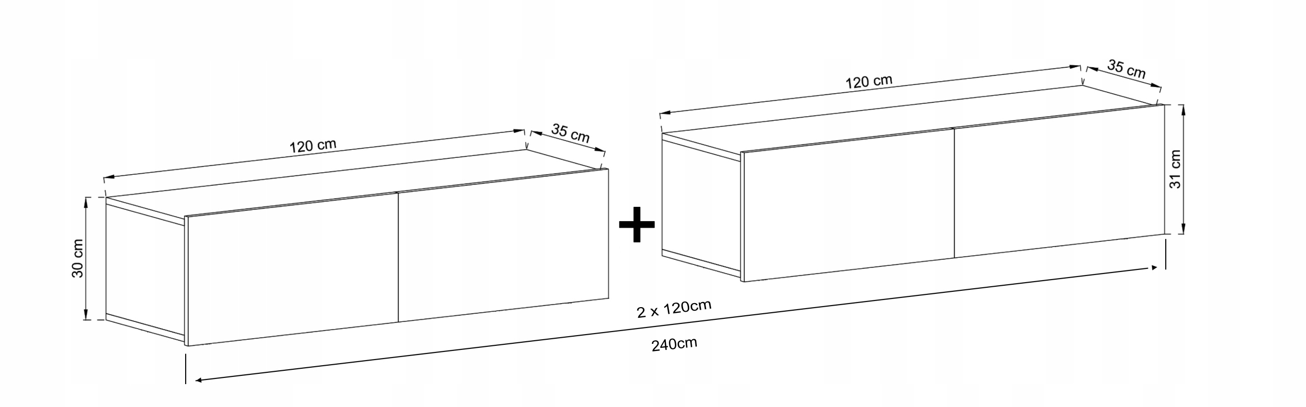 Комплект состоит из двух шкафов шириной 120 см, расположенных рядом друг с другом.
