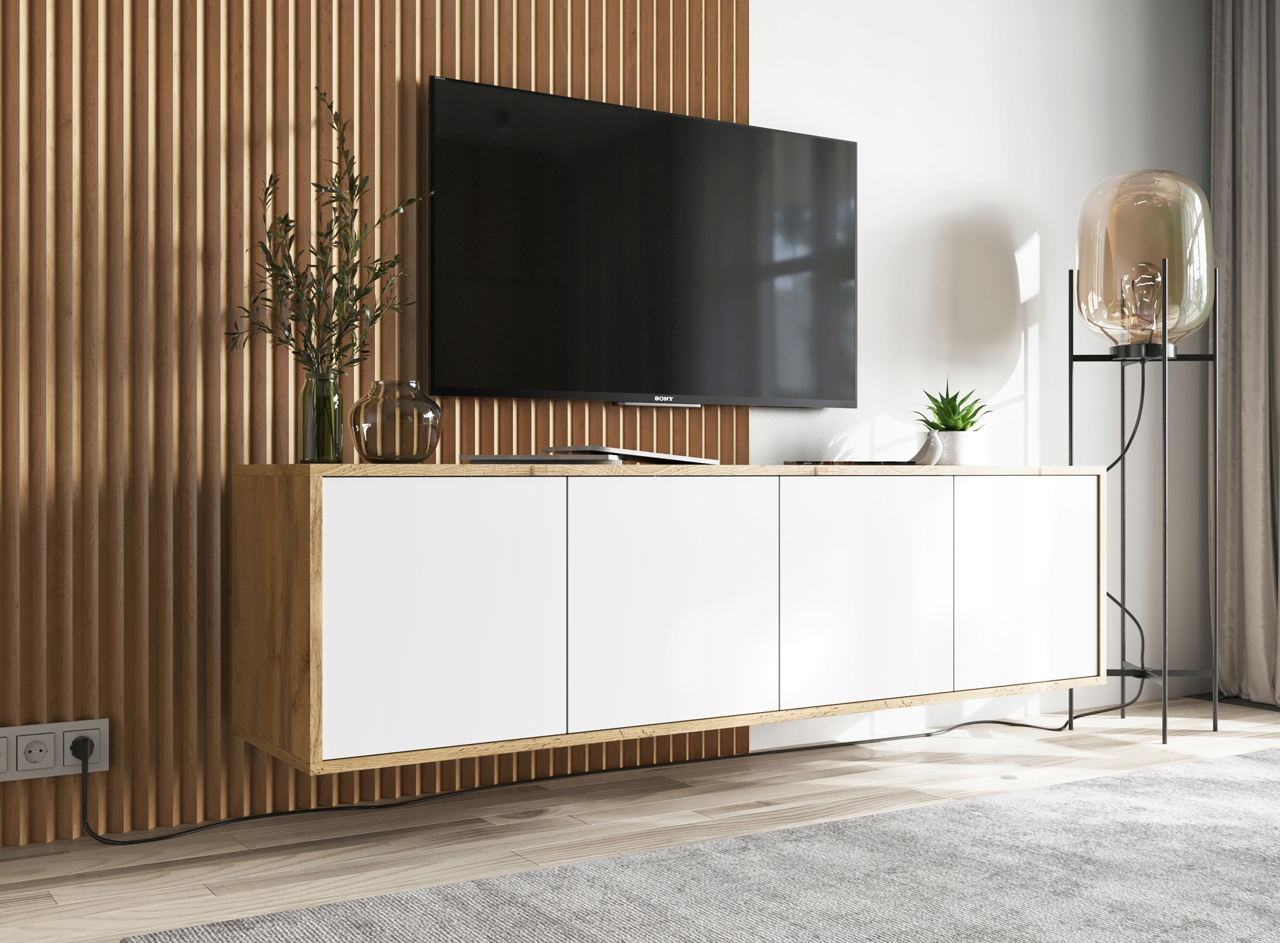 Подвесная тумба под телевизор Loft TV комод Wotan белый 150