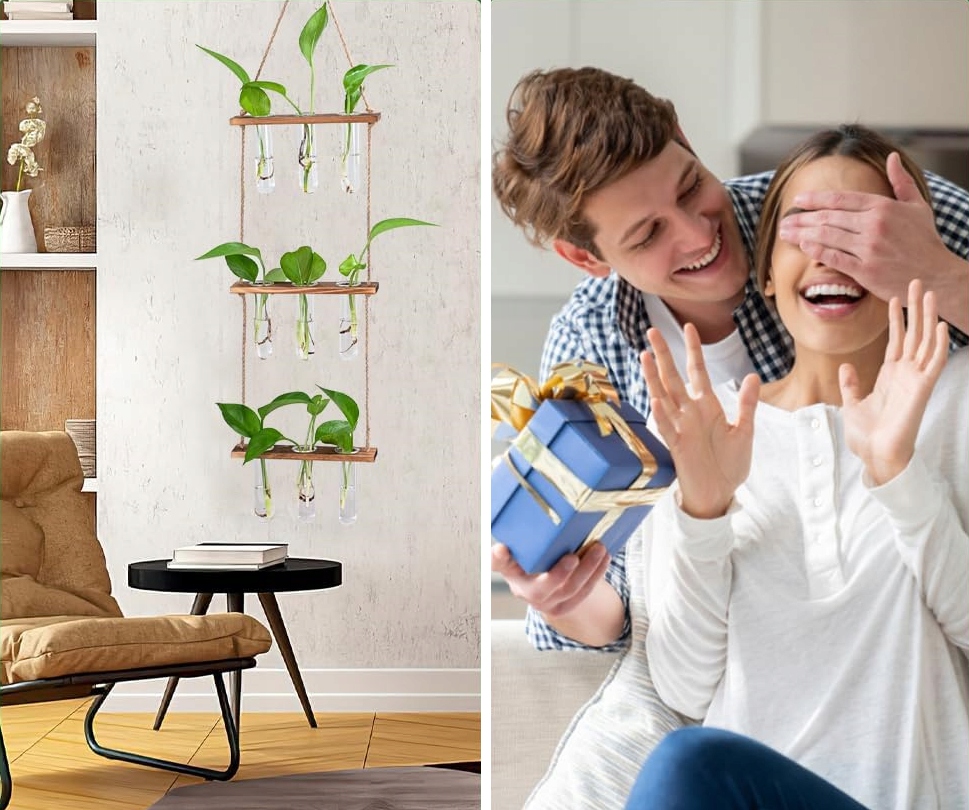 - Эту настенную вазу для пробирок такжеочень легко собрать. .Просто добавьте в пробирки необходимое количество воды, затем поместите пробирки в деревянную миску, затем повесьте деревянную подставку в любимом положении и, наконец, поставьте свои любимые растения или цветы в вазу. Простой и удобный в использовании, идеально подходит для начинающих и опытных любителей.