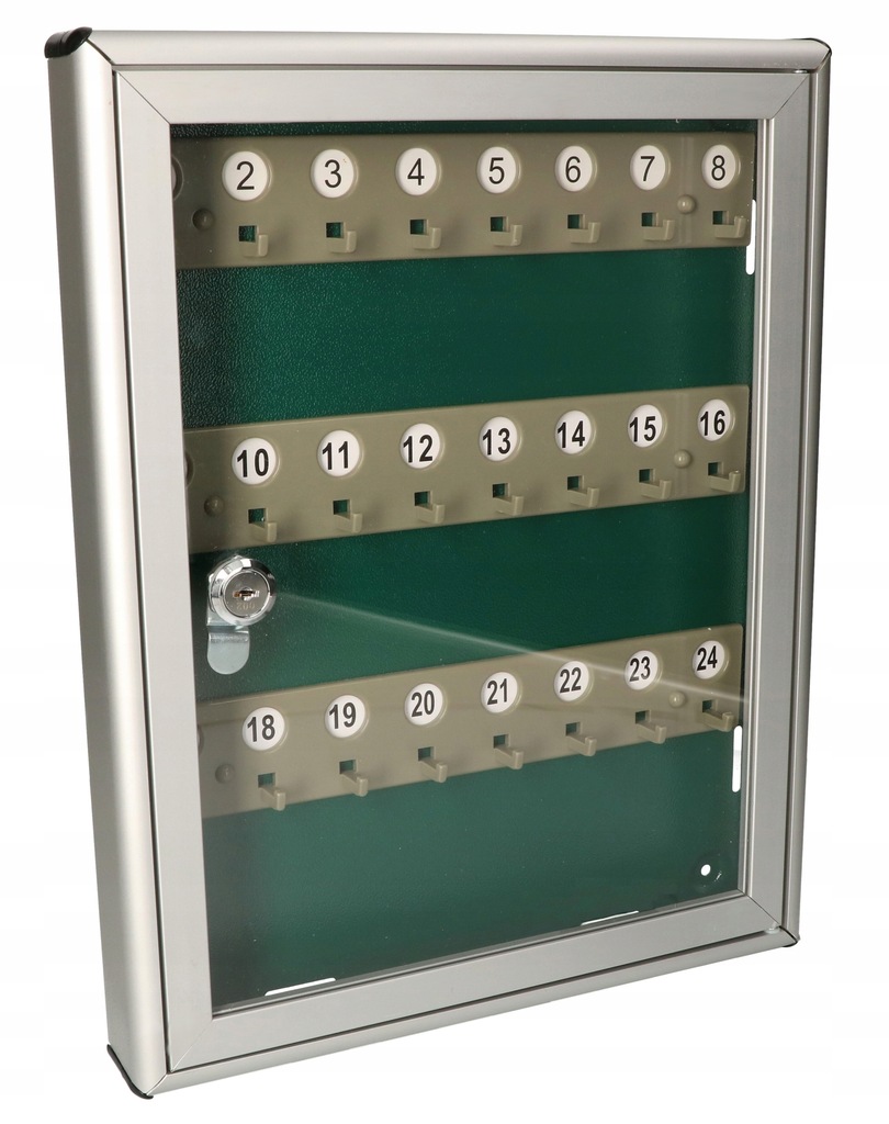 - Доступен в версии с крючками с различными номерами, расположенными за прозрачным стеклом, что позволяет быстро и эффективно найти нужный ключ.