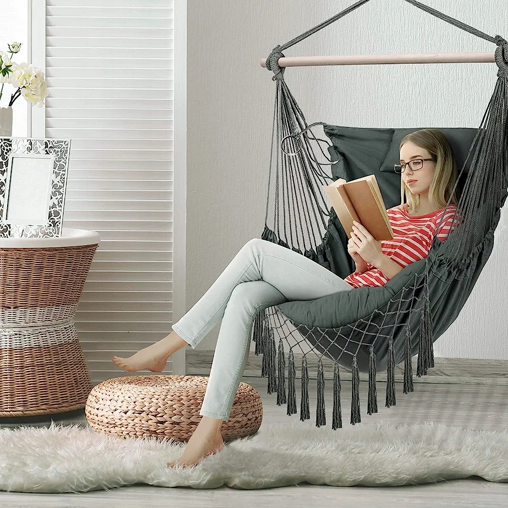 ⭐Наше кресло изготовлено из плетеной, бесшовной и прочной ткани, 80% хлопка и 20% полиэстера , гарантирует комфорт и расслабление. Оно прочное, устойчивое к истиранию и легко чистится, поэтому кресло будет радовать вас долгое время. Толстые плетеные шнуры в сочетании с деревянным оголовьем гарантируют устойчивость и надежность конструкции, а также ее идеальную сбалансированность.