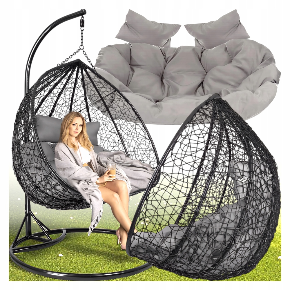ПОДВЕСНОЙ СТУЛ COCOON GARDEN, КОРЗИНА-КАЧАЛКА НА ДВУХ ЧЕЛОВЕК, ЧЕРНЫЕ КАЧЕЛИ ПРЕМИУМ