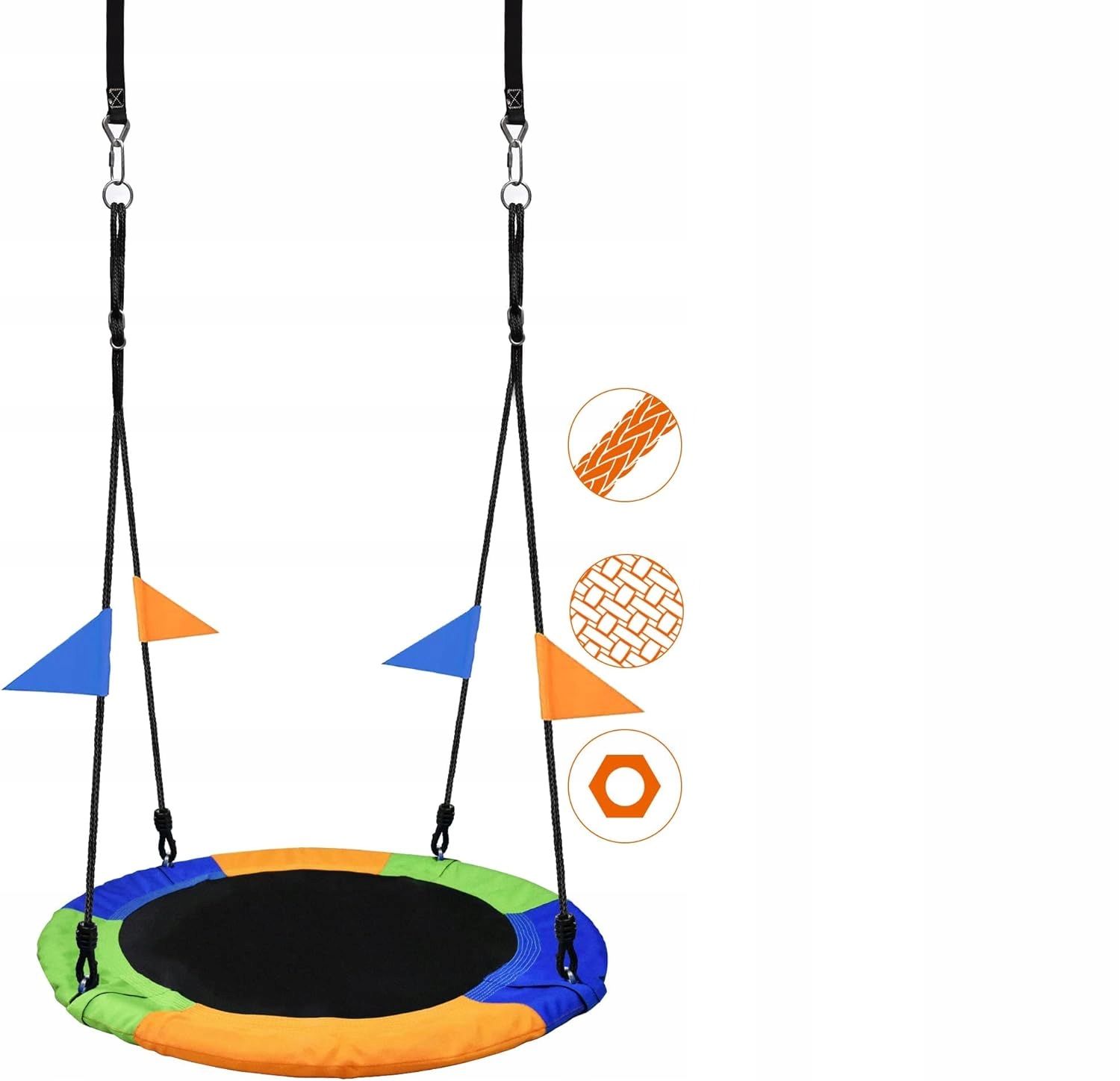Аистиное гнездо Dollo Sport имеет широкое круглое сиденье, изготовленное из безопасных и прочных материалов. Качели изготовлены из Ткань Оксфорд, гарантирующая безопасную игру. Грузоподъемность до 120 кг возможна благодаря использованию плетеных канатов толщиной 10 мм. Это гарантирует безопасность и позволяет даже взрослым пережить минуты радости. Это идеальное решение для большой семьи. Его размер и форма позволяют разместить в нем несколько человек.