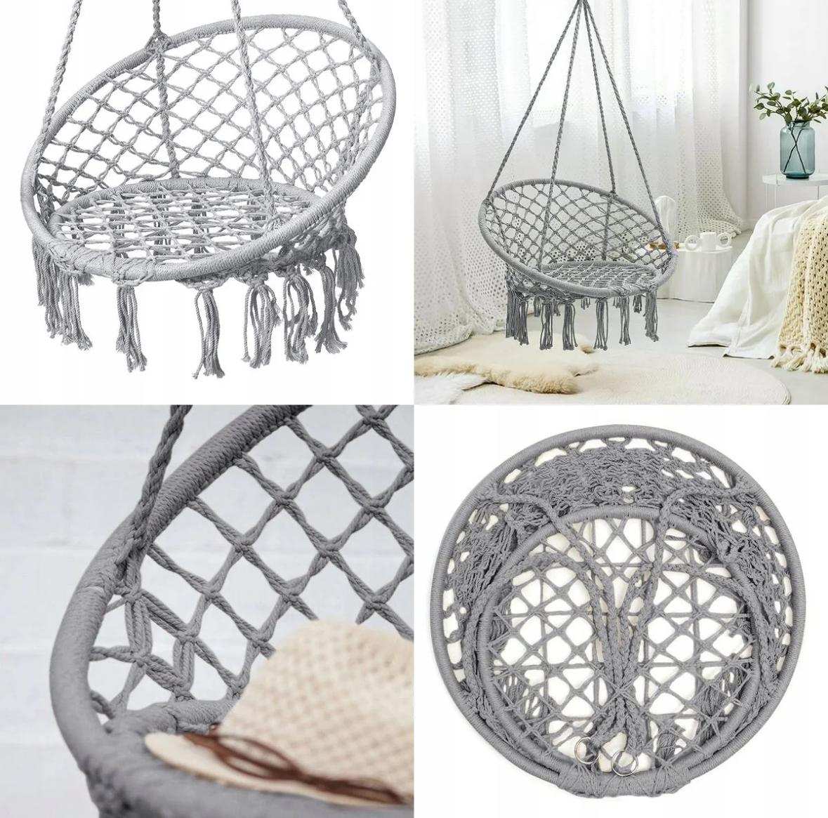 ПОДВЕСНОЙ СТУЛ «ГНЕЗДА АИСТА», КАЧЕЛИ БОХО С СЕРОЙ ПОДУШКОЙ