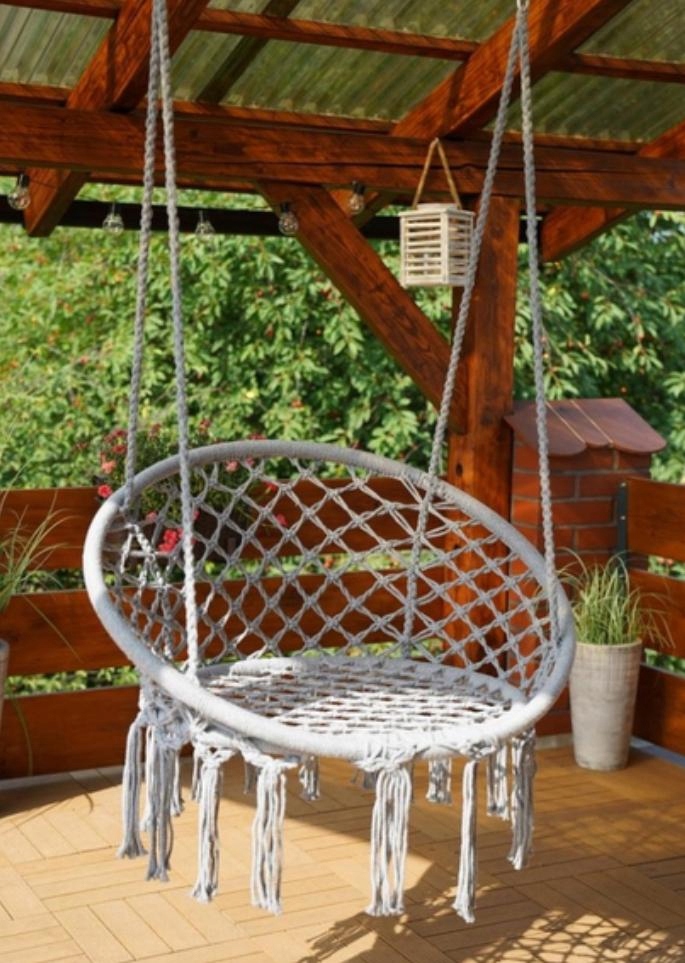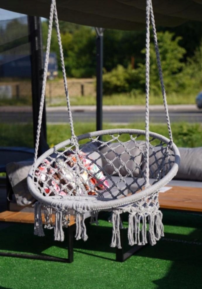 Подвесной стул STORK'S NEST, КАЧЕЛИ В БОХО С СЕРОЙ ПОДУШКОЙ