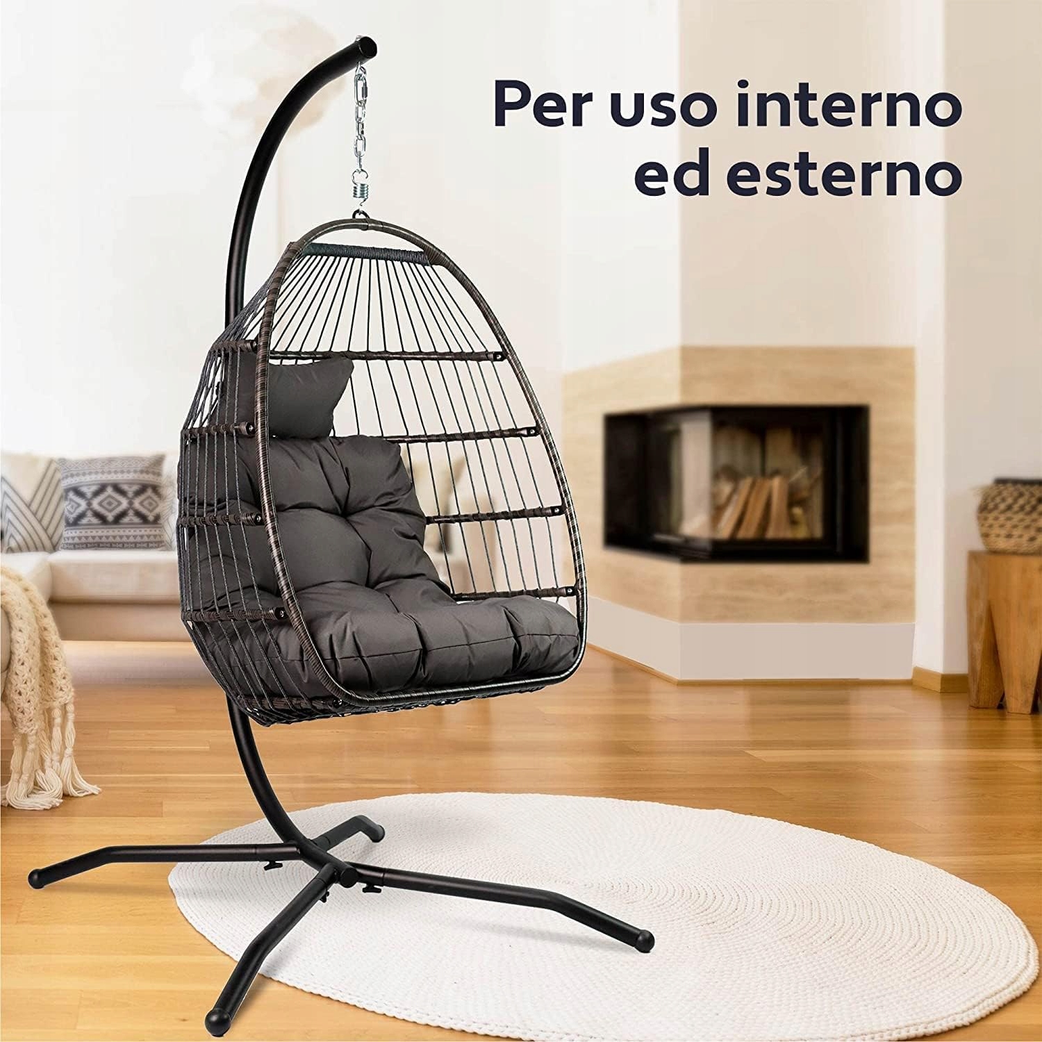 vita5, висящее кресло с рамой, удобным подвесным креслом, ротантом, подвесным креслом для использования снаружи и внутри, к террасе и углу чтения, нагрузка 150 кг, темно -серый h1>