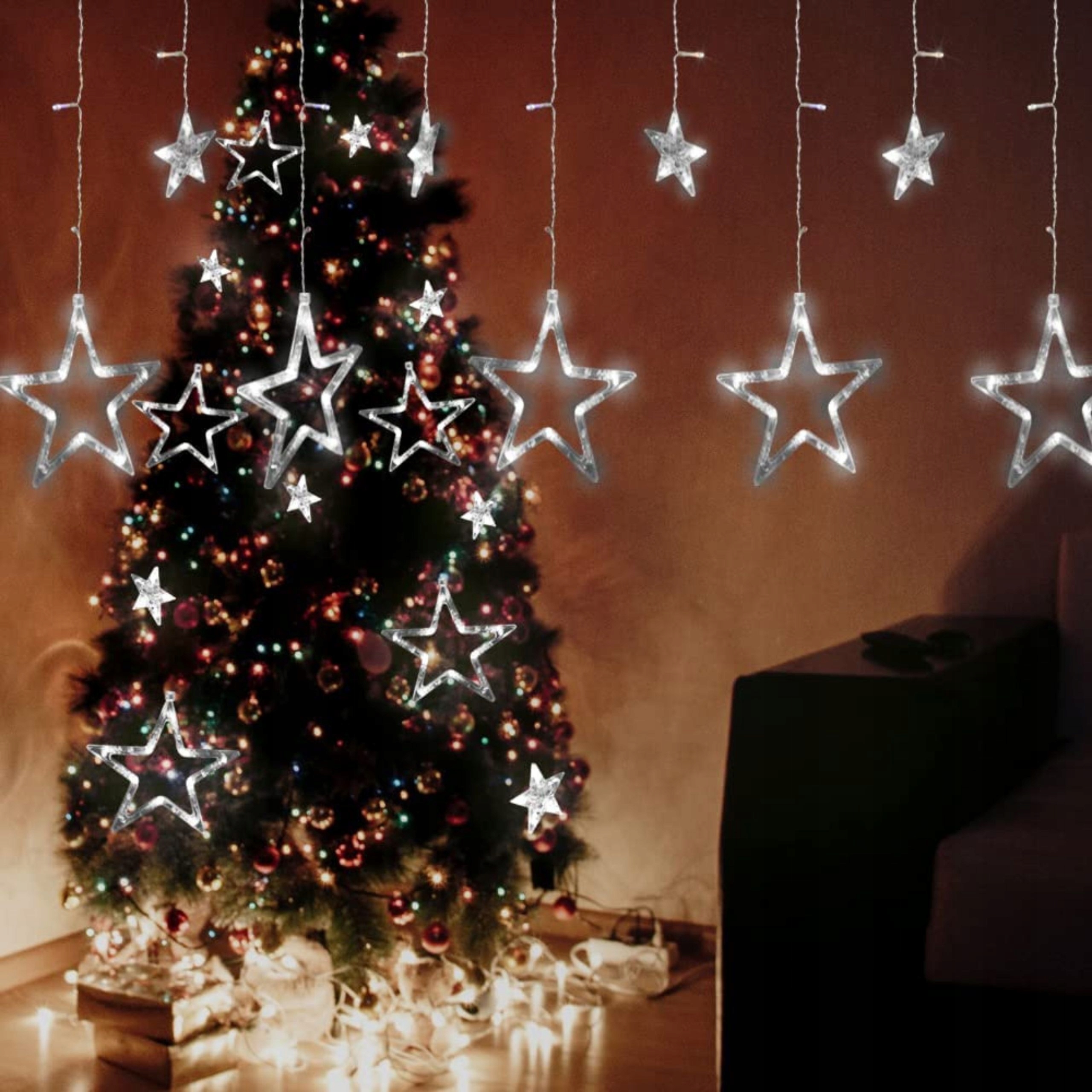 ПІДВІСНІ ЗІРКИ ЯЛИНКА ВОГНІ БІЛА СВІТЛОДІОДНА ШТОРА
