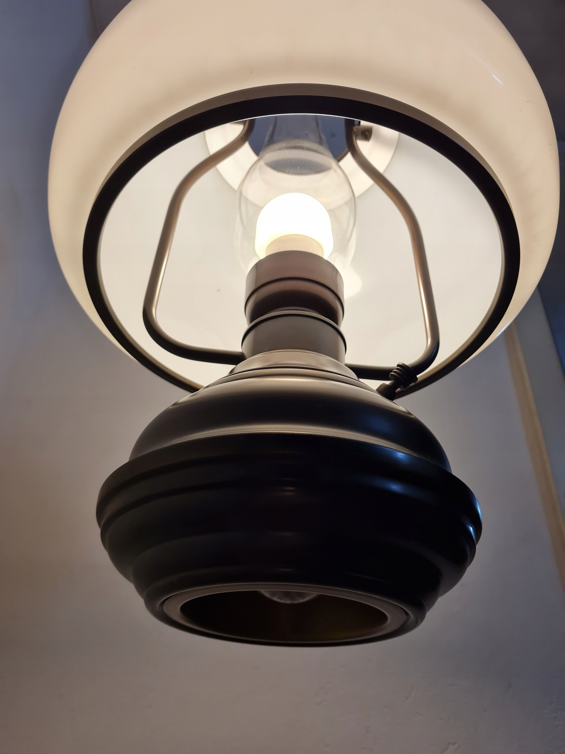 Двухточечный подвесной светильник с белоснежным абажуром.