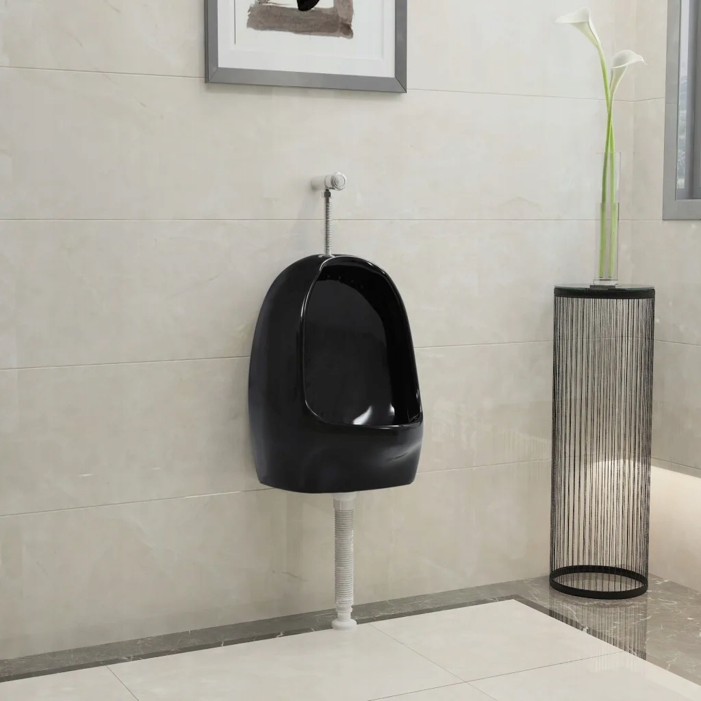 Подвесной писсуар со смывным клапаном, керамика, черный