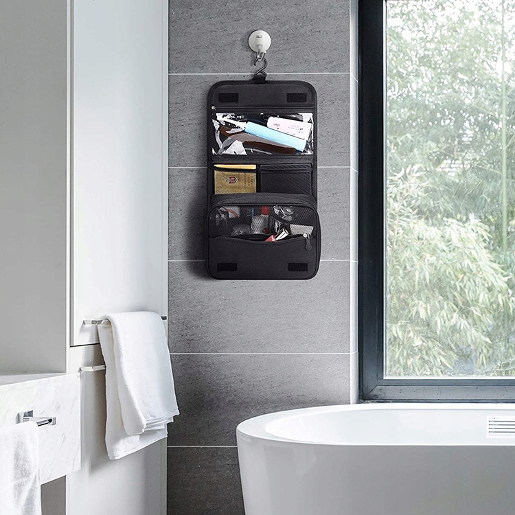 Исключительно удобная и в то же время вместительная косметичка черного цвета, которую можно повесить как удобный органайзер б>. Идеальное решение как для женщин, так и для мужчин, которые хотят с комфортом позаботиться о себе во время путешествия. Он прекрасно сохраняет косметику в порядке, а в разложенном виде делает каждую косметику «под рукой»..