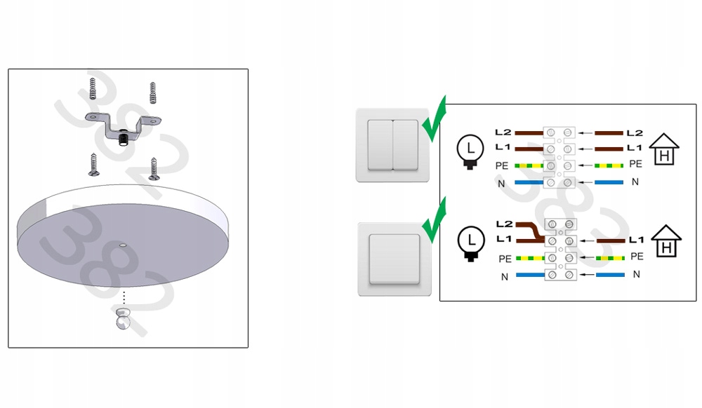 В комплект не входят источники света и дюбели (выберите подходящие для потолка)