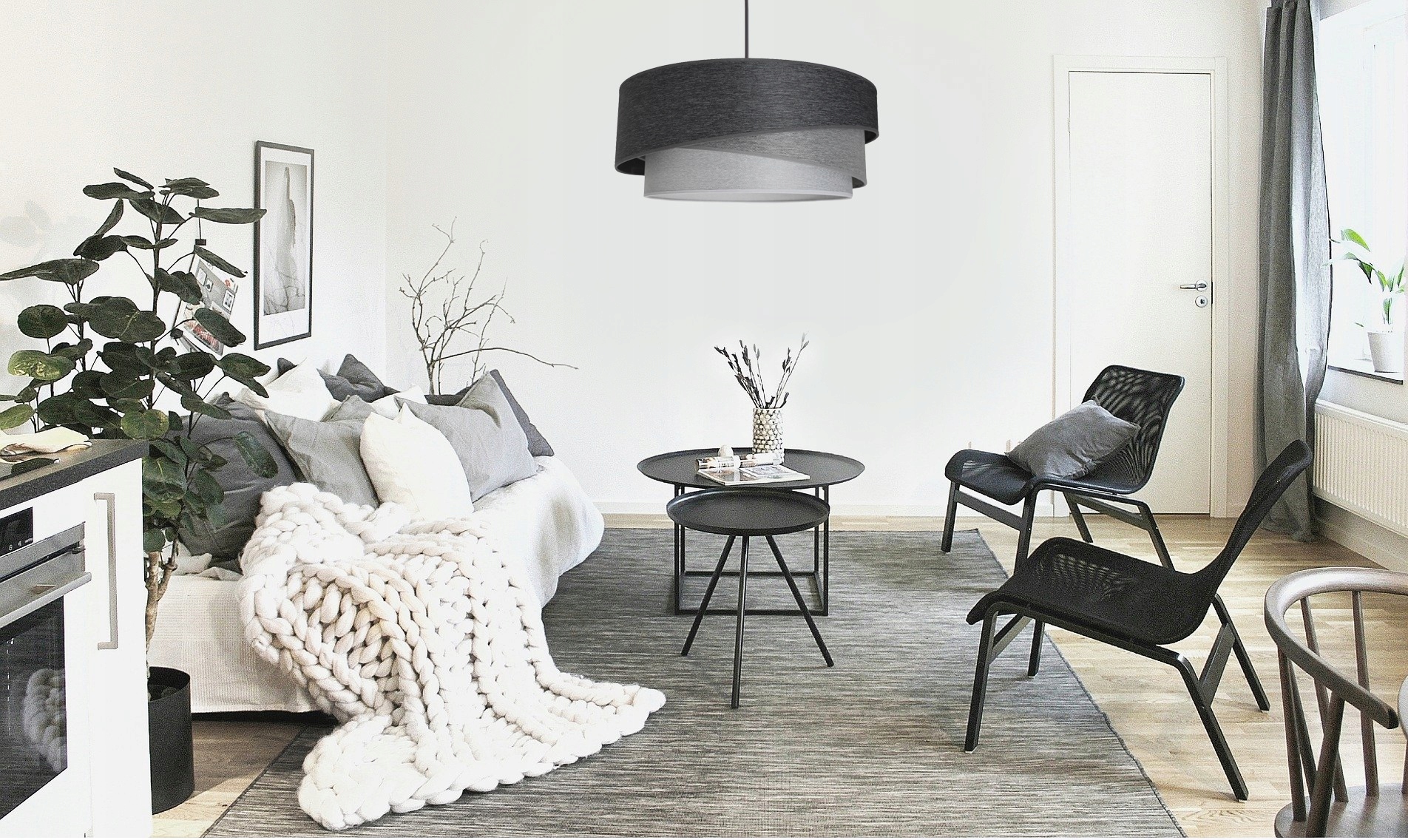 TRIO — светильник в сочетании с 3 абажурами различных оттенков серого: от темно-графитового до светло-пепельного. кокон.