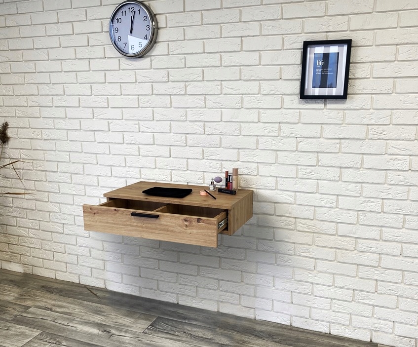...мебель приходит к вам в собранном виде, нужно только установите ручку и прикрутите туалетный столик к стене..