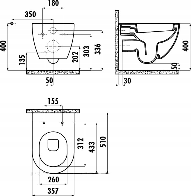 Унитаз подвесной 355х400х510 мм