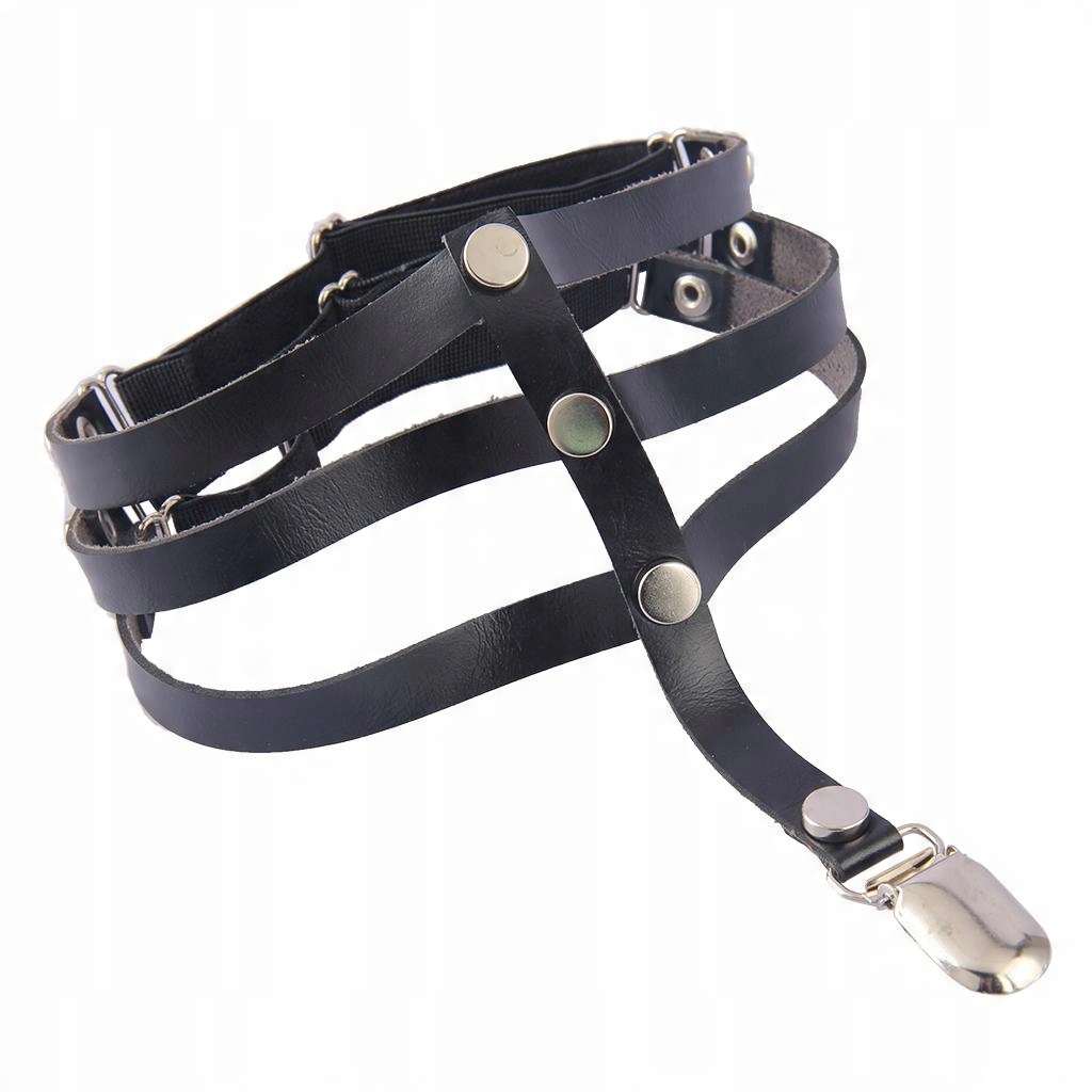 из материала PU, который является мягким и аллергическим, подвязка имеет 1 пряжку, может удерживать крепкие носки.