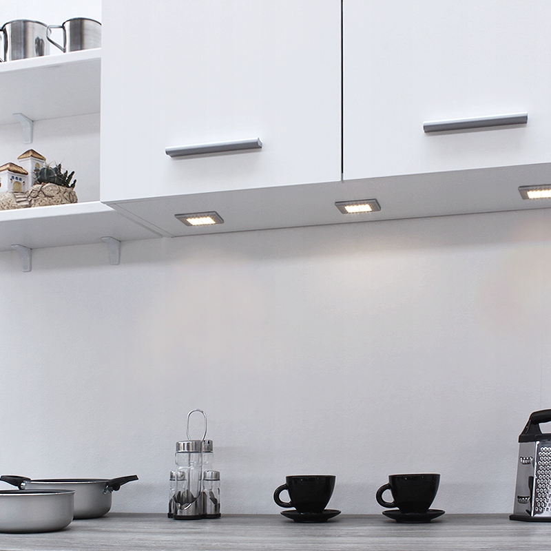 Doris SMD Подземная мебельная лампа - это универсальная лампа, оборудованная светодиодами. >, идеально подходит для освещения кухонного прилавка, полков, интерьера гардероба, небольших декоративных углублений. Dwóch Blaszek