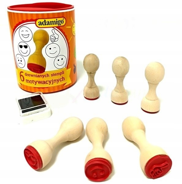 PIECZĄTKI STEMPLE MOTYWACYJNE DREWNIANE BUZKI ZESTAW 6 SZTUK ADAMIGO