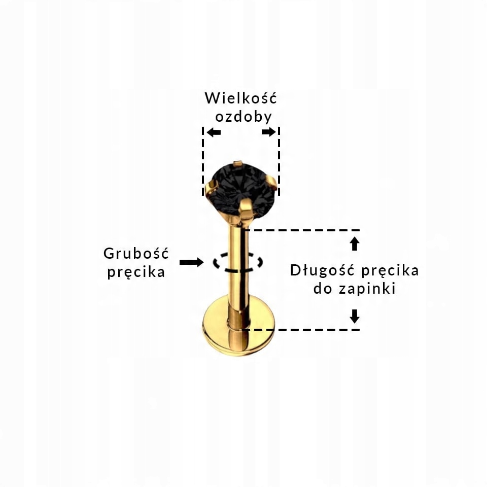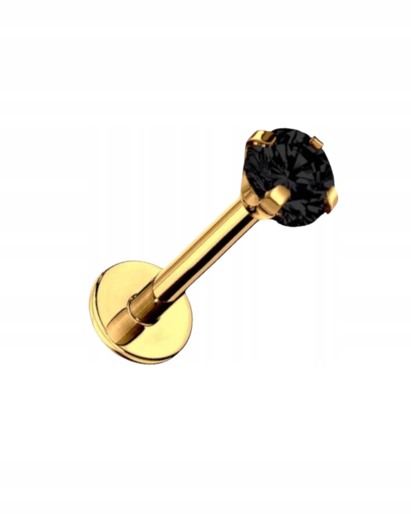 Золотая серьга PIERCING Labret с черным кристаллом Lobe Helix 1,2/6/4