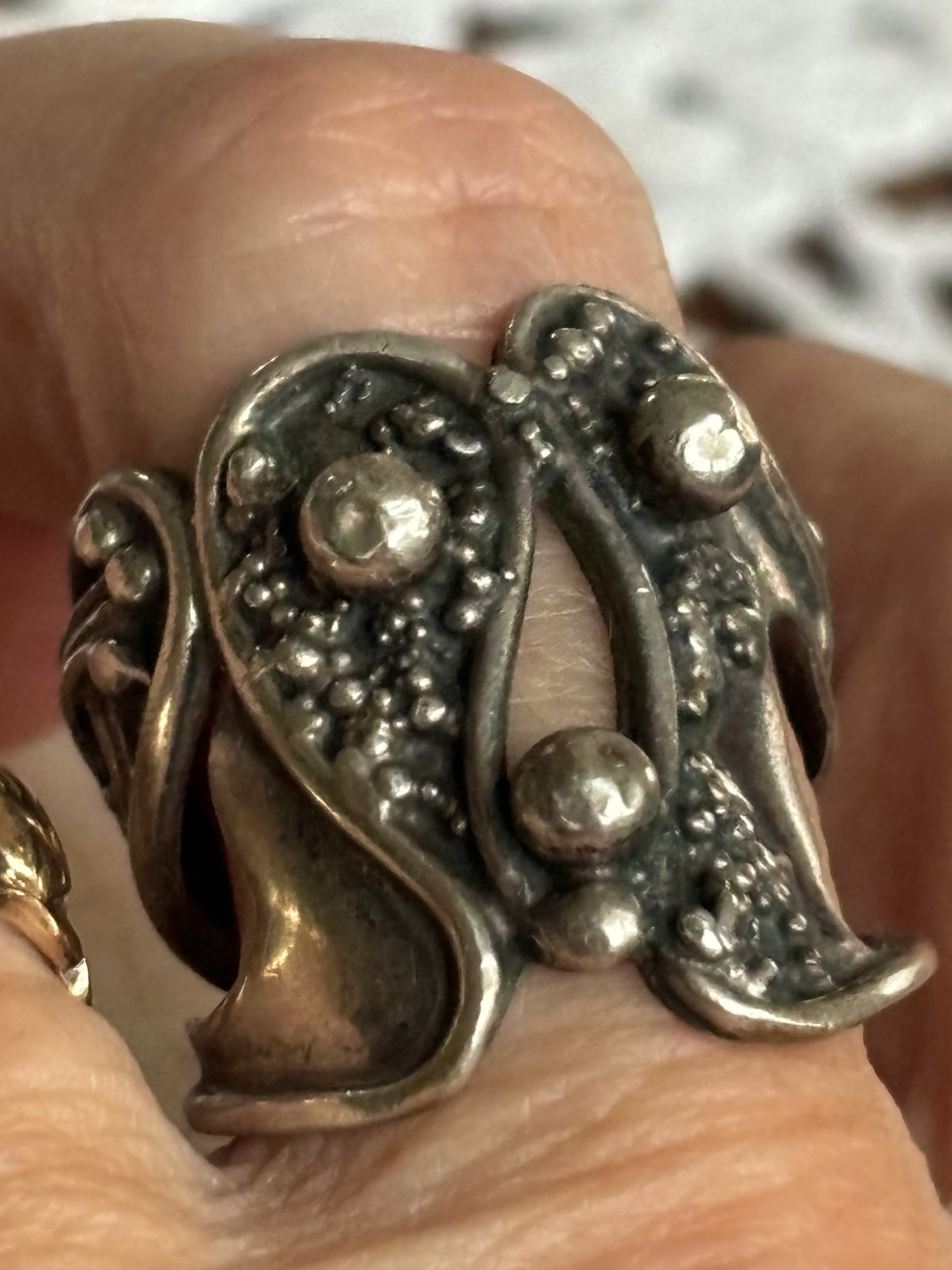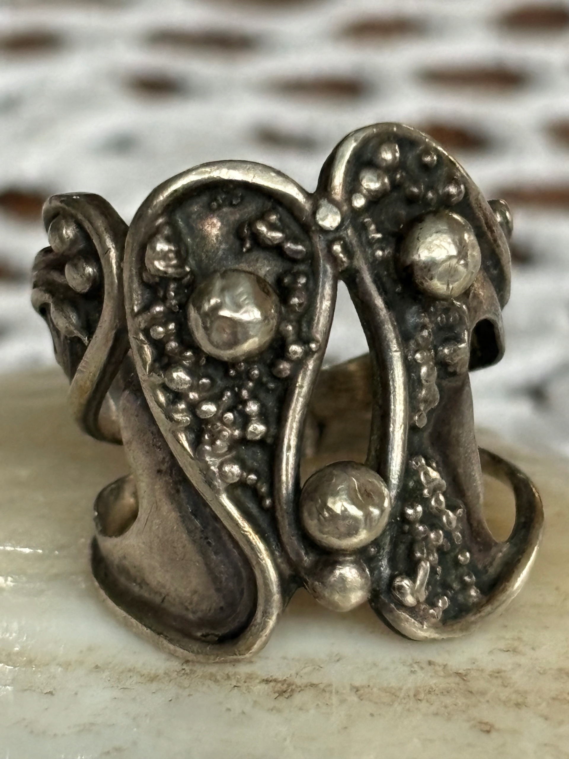 Pierścionek obrączka stary srebrny modernistyczny kulki