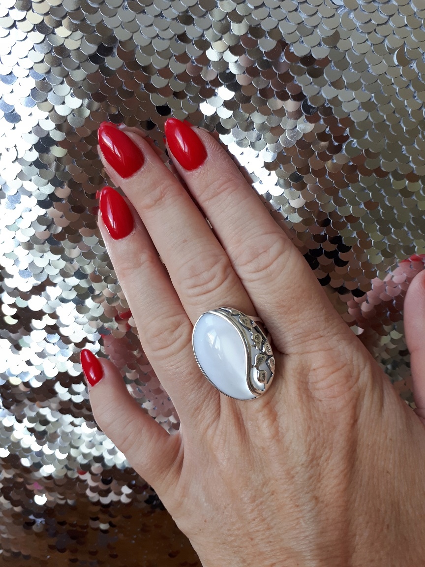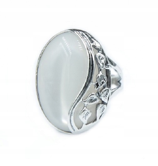 PIERŚCIONEK SREBRNY MASA PERŁOWA LISTKI ROZMIAR12