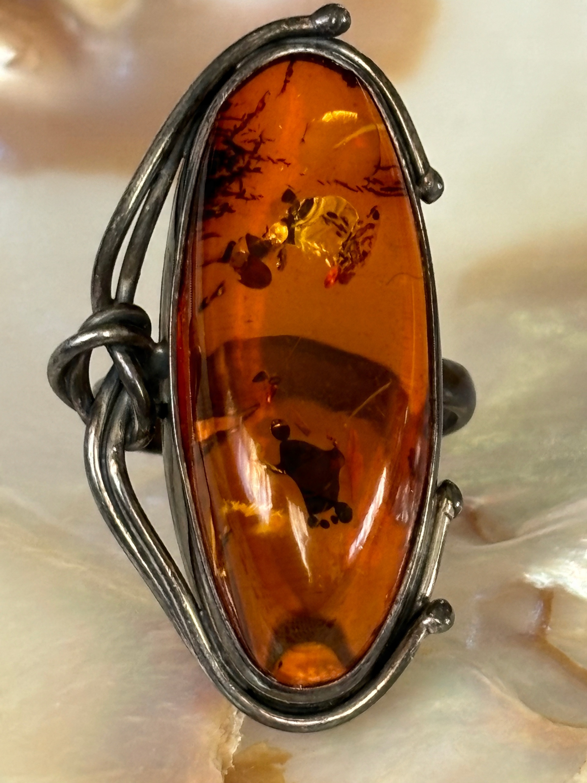 СЕРЕБРЯНОЕ кольцо с янтарем