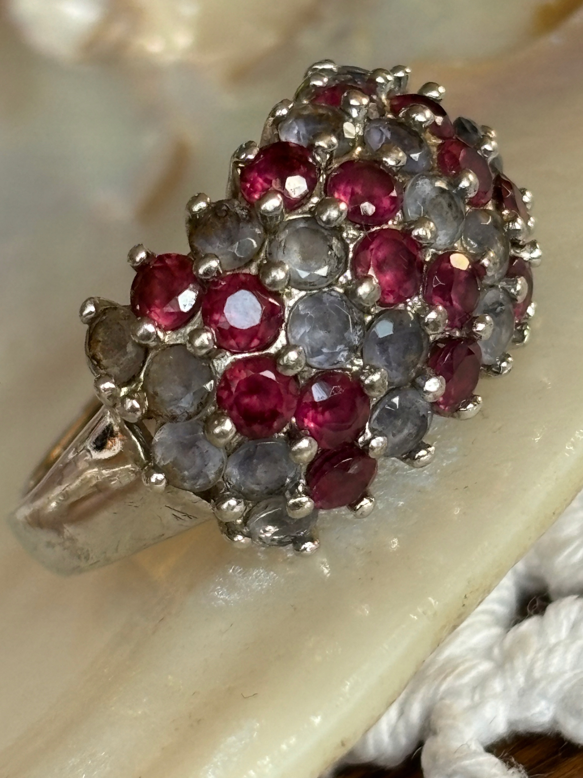 Pierścionek stary srebrny kolorowe kamienie naturalne
