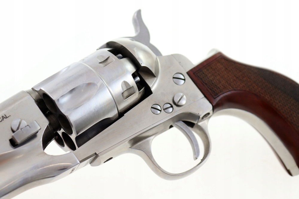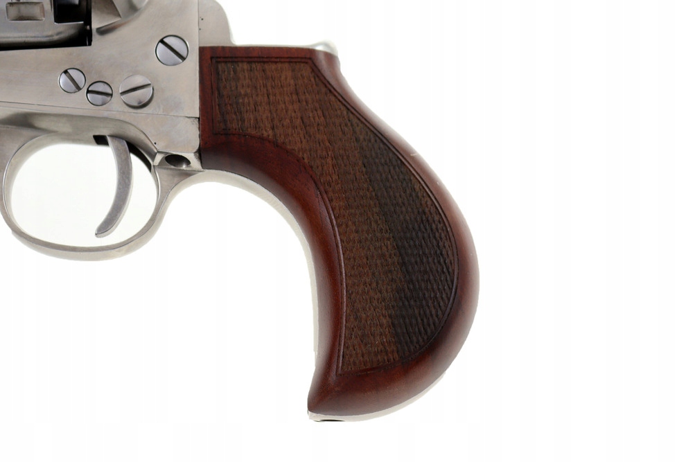 Revolver 1862 Colt Pocket Police Snubnose Nepainless .44 с эргономичным гром -рукоятостью и рамой из нержавеющей стали в старой серебристой отделке.