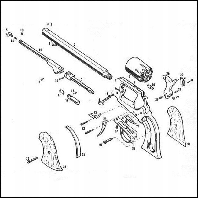 Для вышеупомянутого револьвера рекомендуется использовать в дозе черный порох с грануляцией 3F (FFFG). 0,6-0,8 грамм/9-12 гран и пули размером 0,375"/9,53мм.