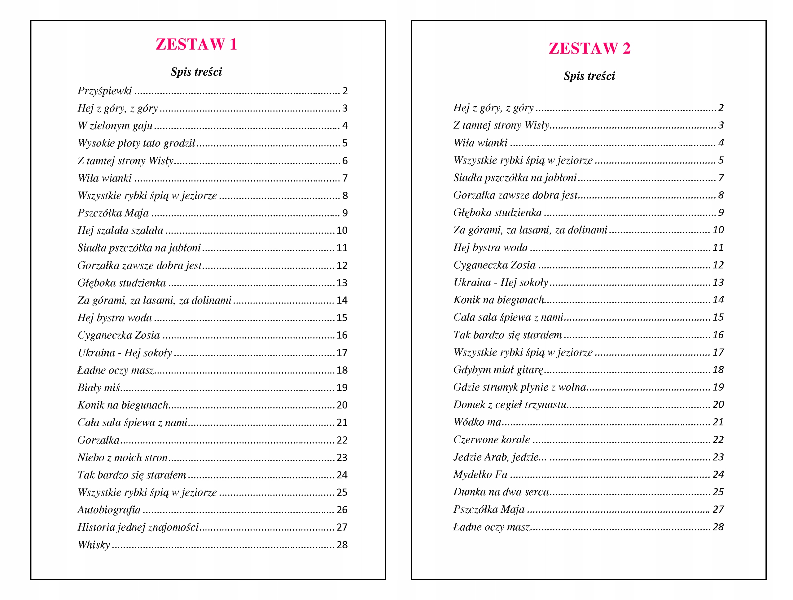 Содержание (один набор на выбор, возможность незначительной модификации песен)