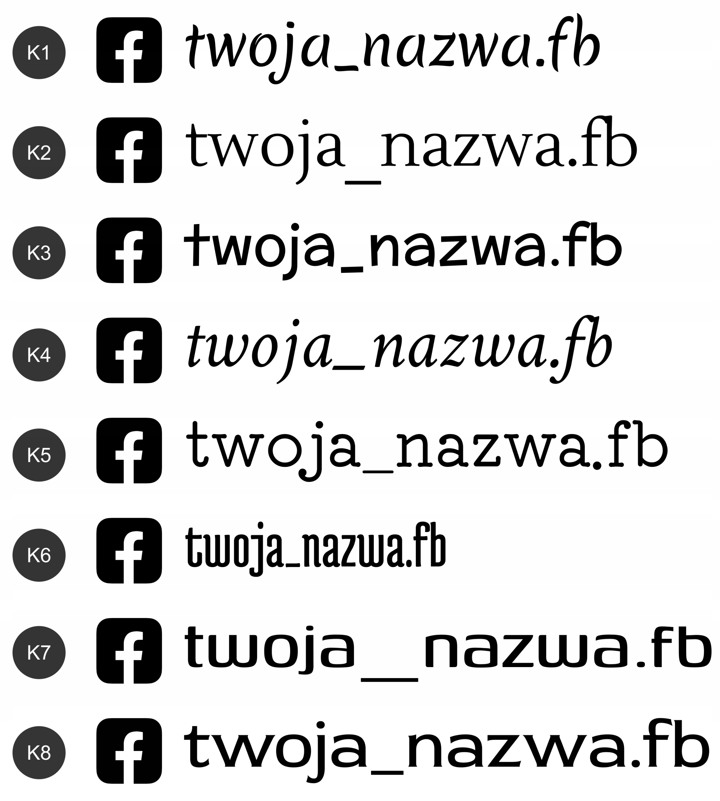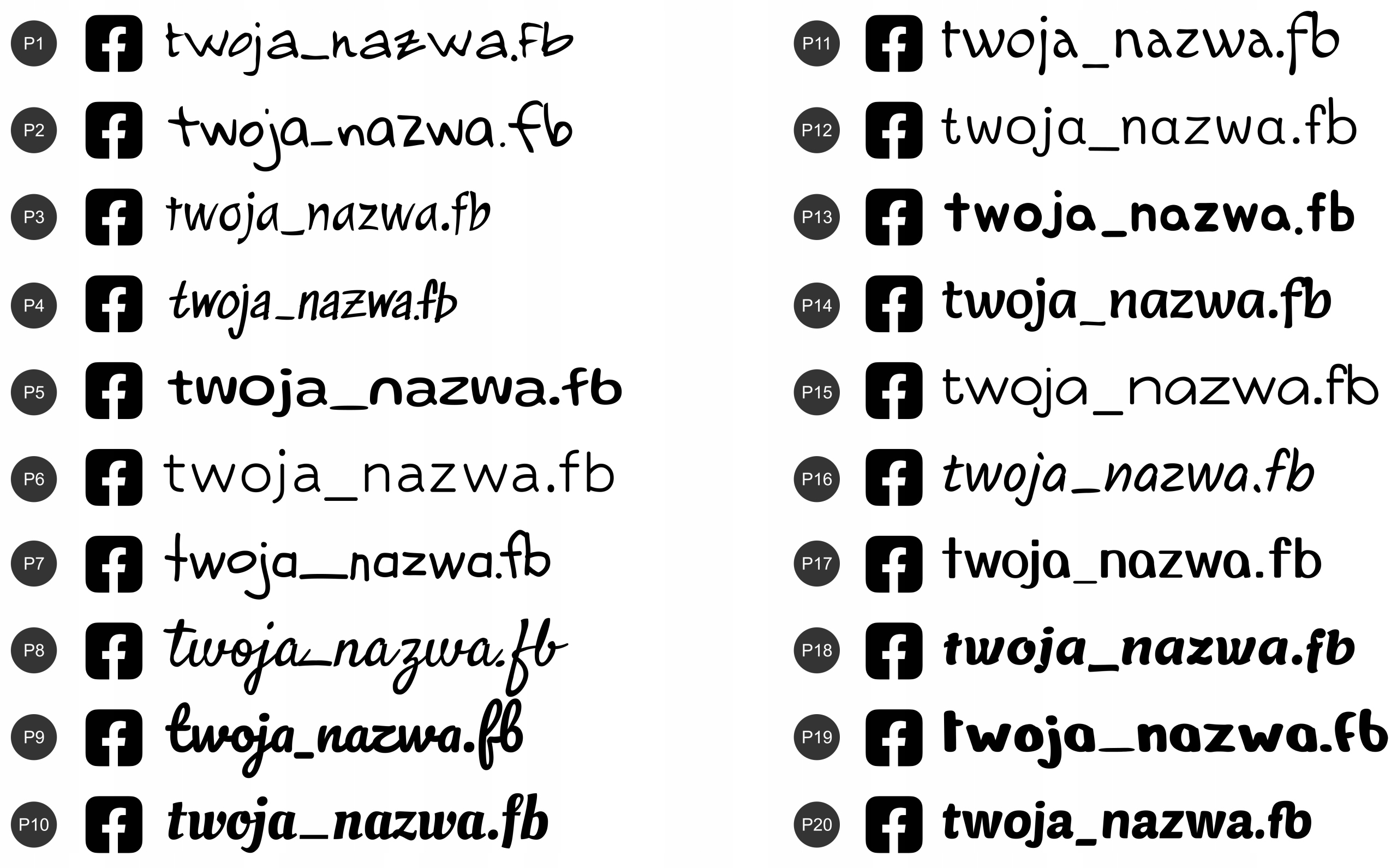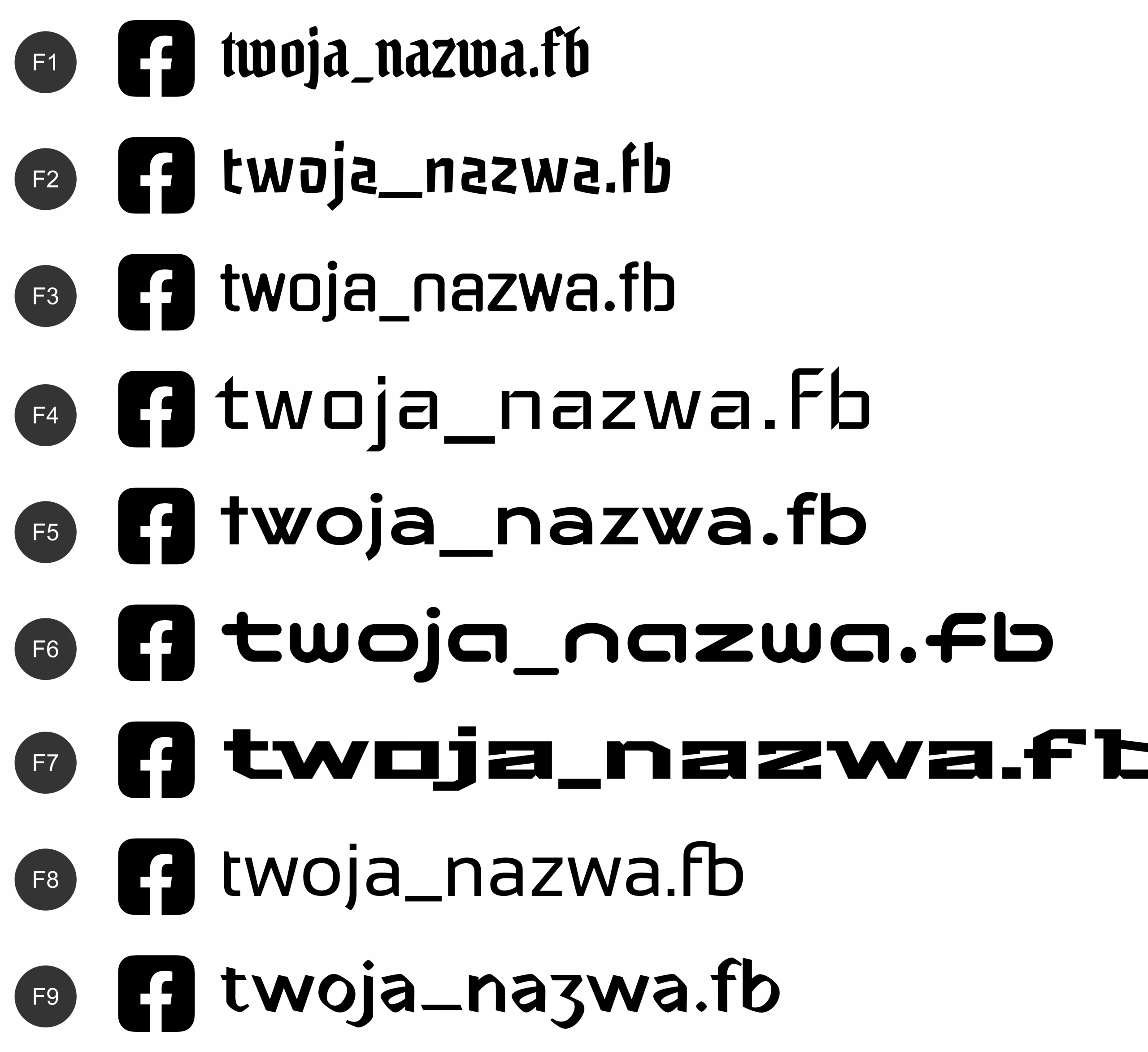 Пирогальная наклейка Имя пользователя Facebook 4CM Высокая высота, выбор шрифтов